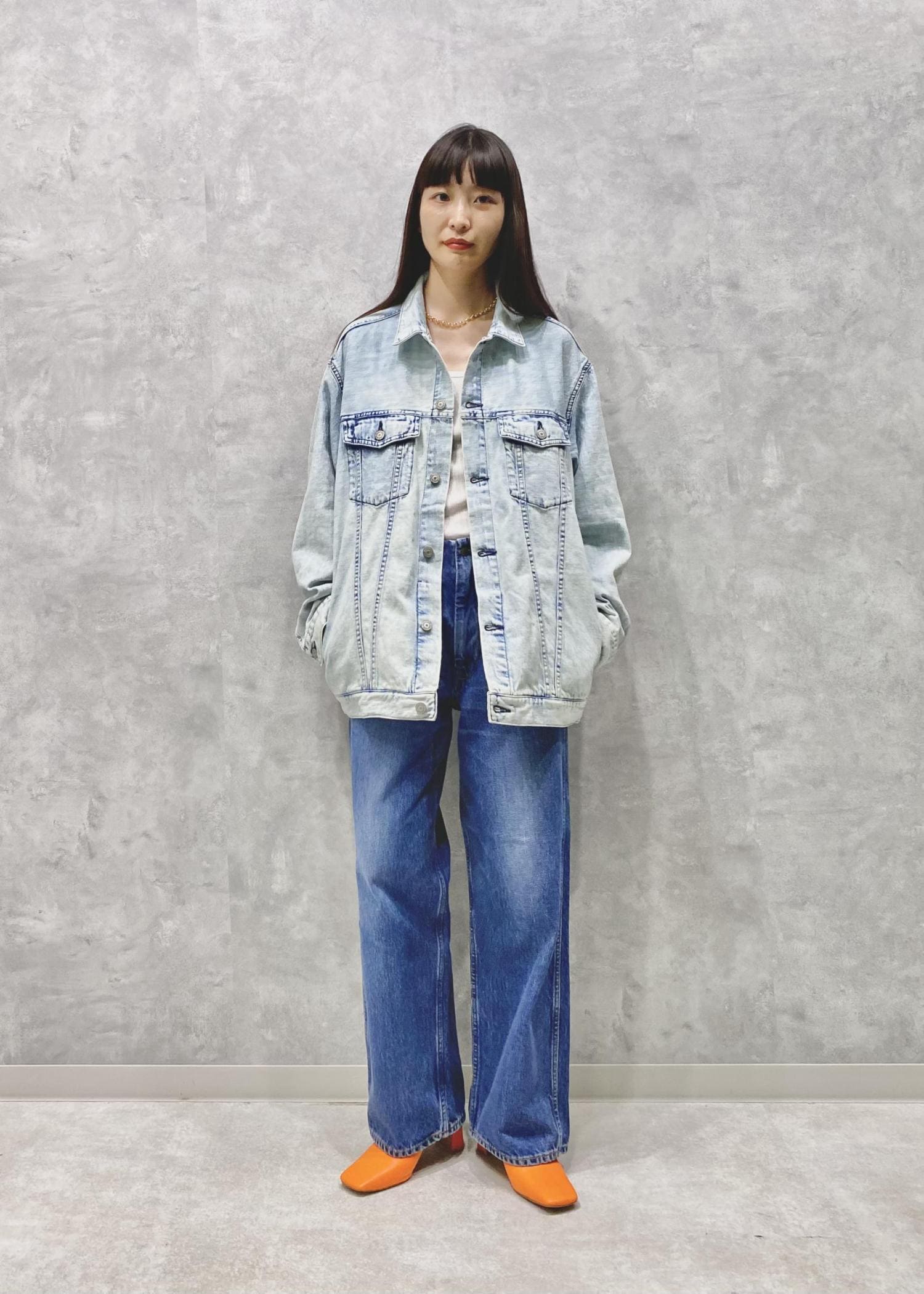 季節の変わりめに重宝する、さっと羽織れるノーカラーのデニムジャケット。程よいオーバーサイズは、着るだけで旬なスタイリングにしてくれる。