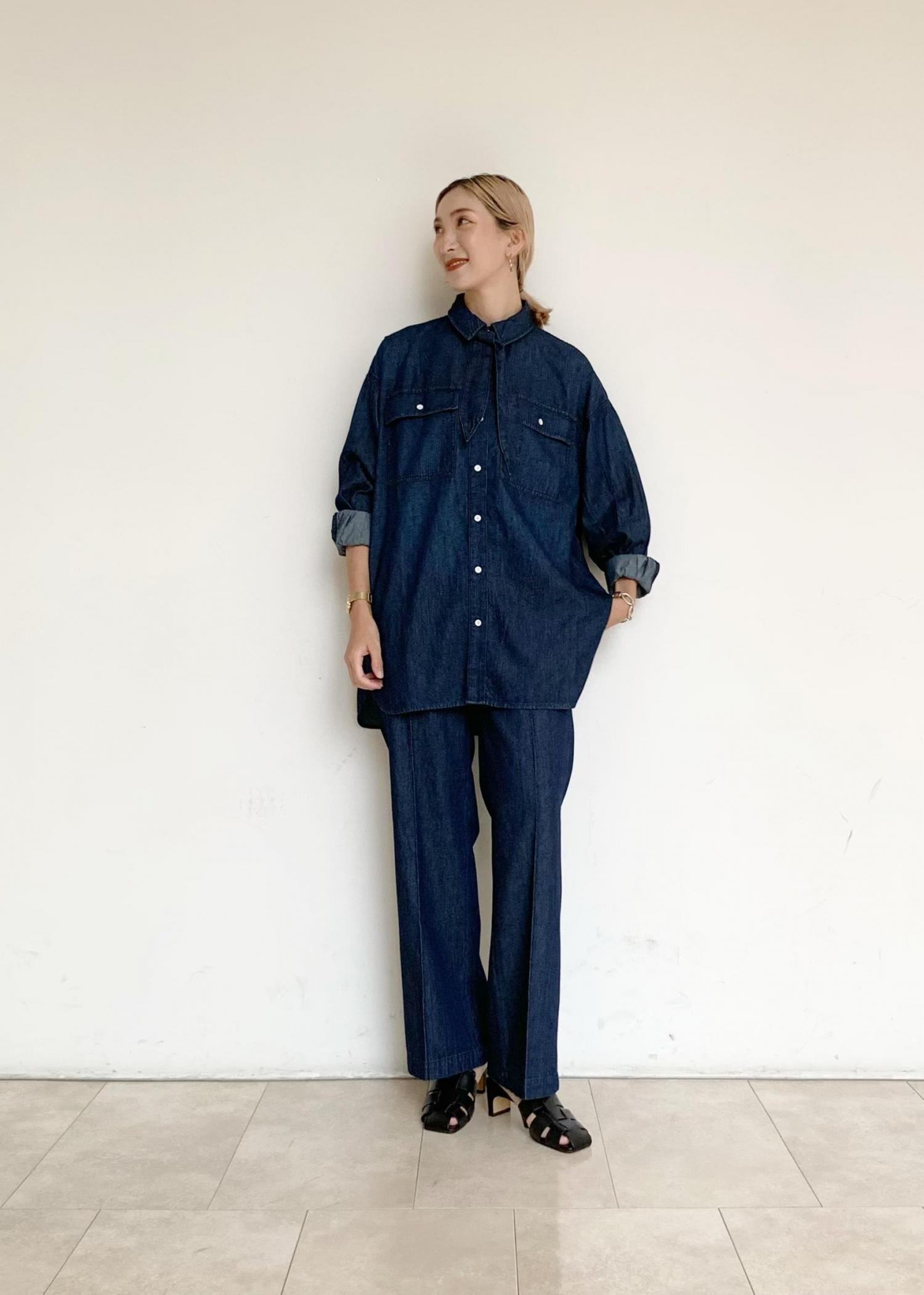 柔らかく軽やかなデニムシャツは、単品で着ても、セットアップで着てもコーデが決まる優秀アイテム。サスティナブルUSAコットンで、環境に優しいデニム素材を使用しています。
