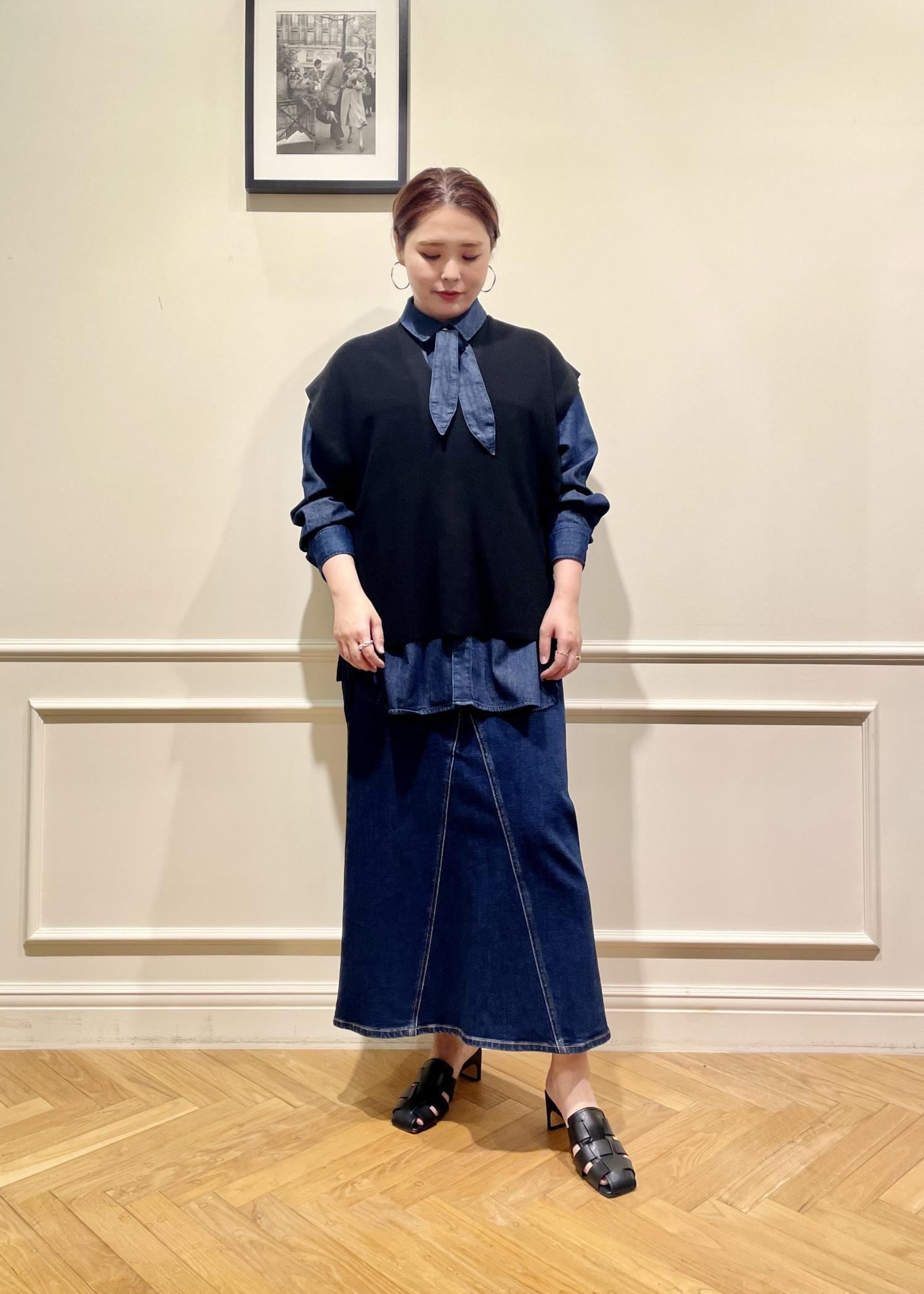 カットソーにも、シャツにも、ニットにも。どんなトップスでも高相性なデニムスカート。濃いブルーのインディゴカラーが、秋の雰囲気を引き立ててくれます。