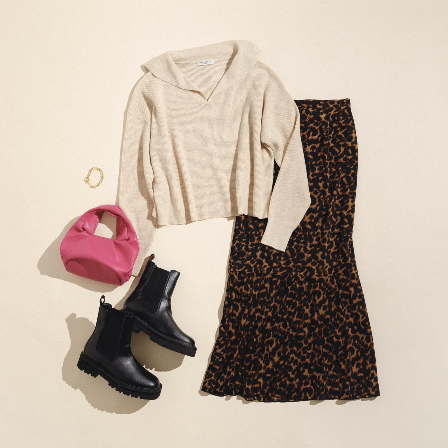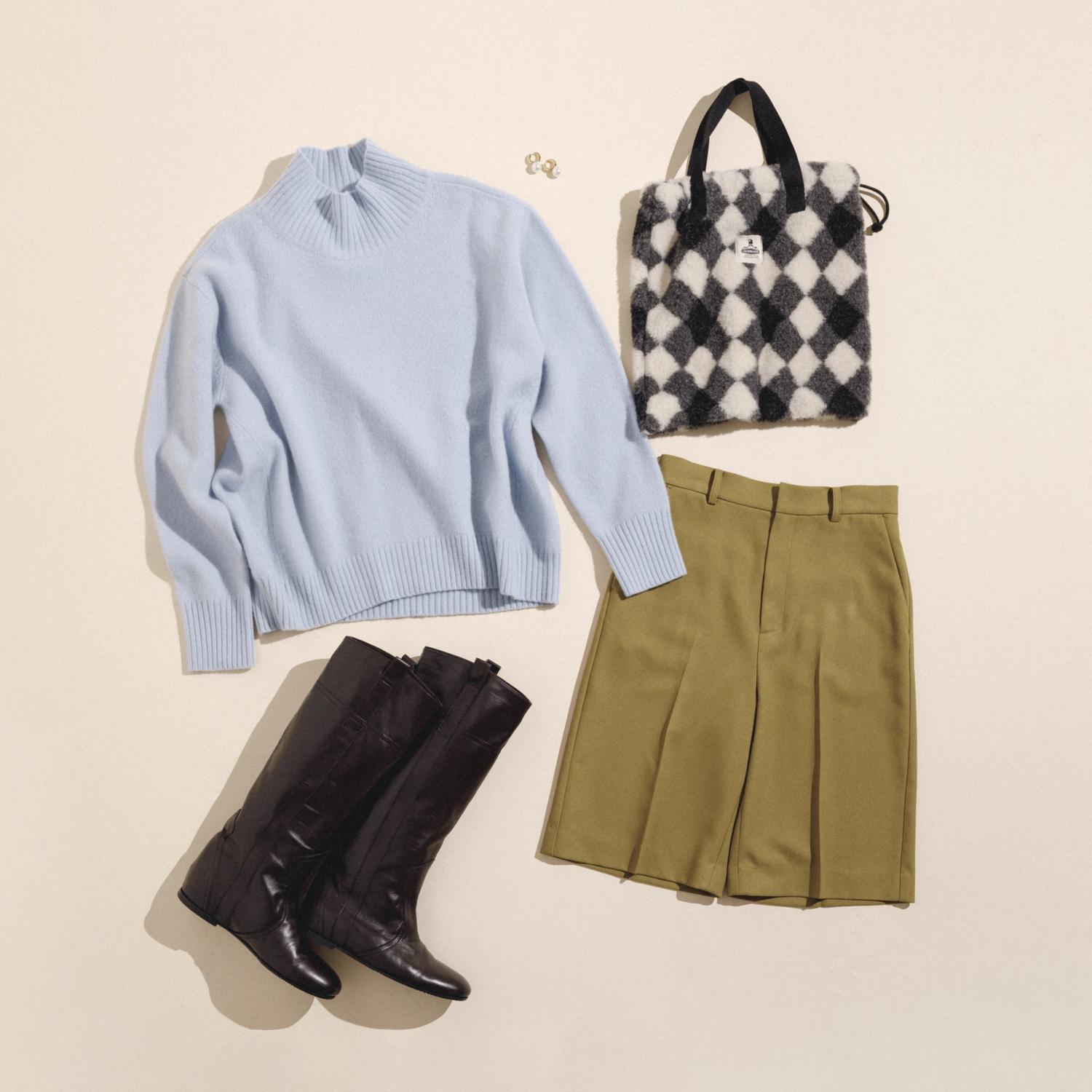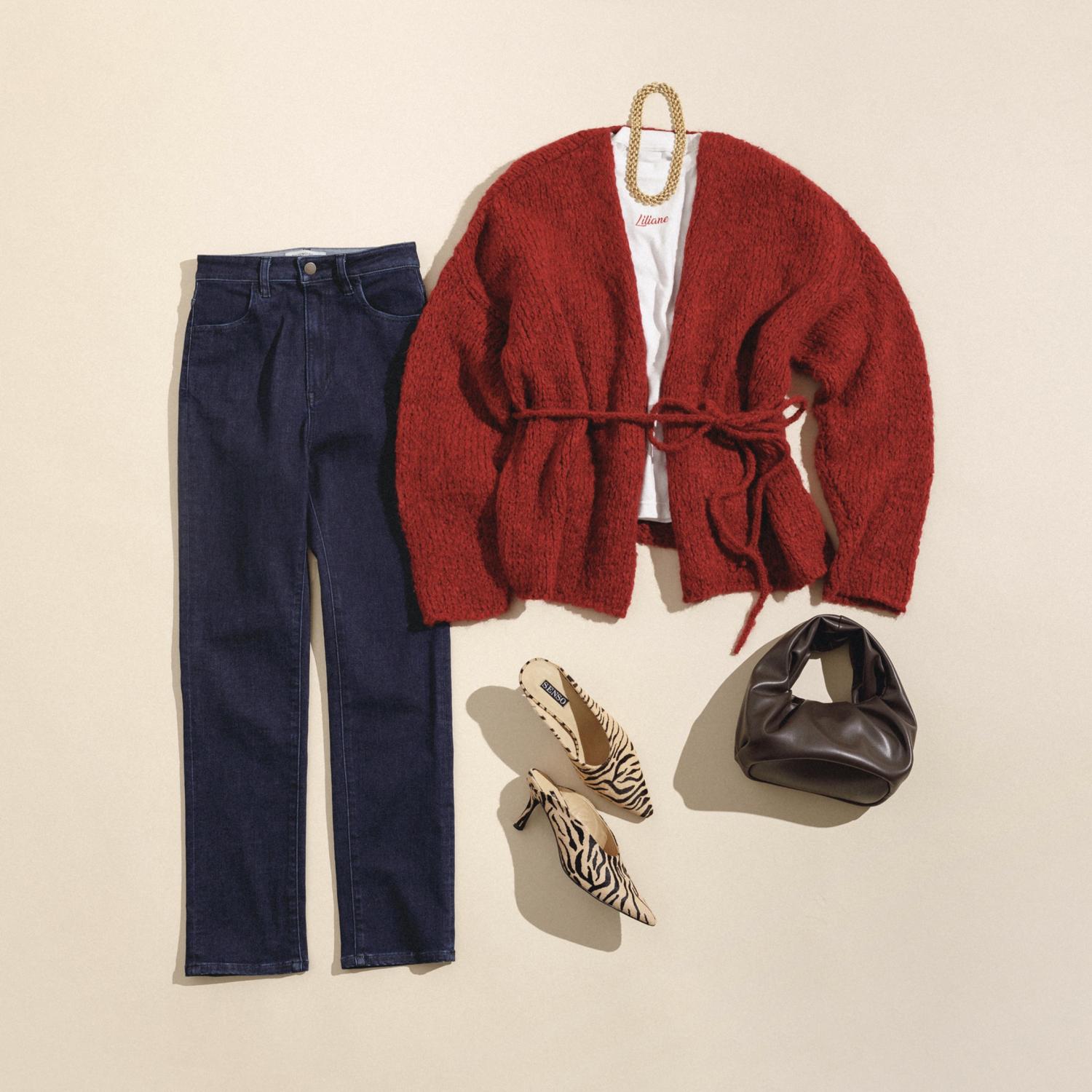 モデルの小谷実由 氏が着こなす、80年代ムードのニットスタイリングも必見です!