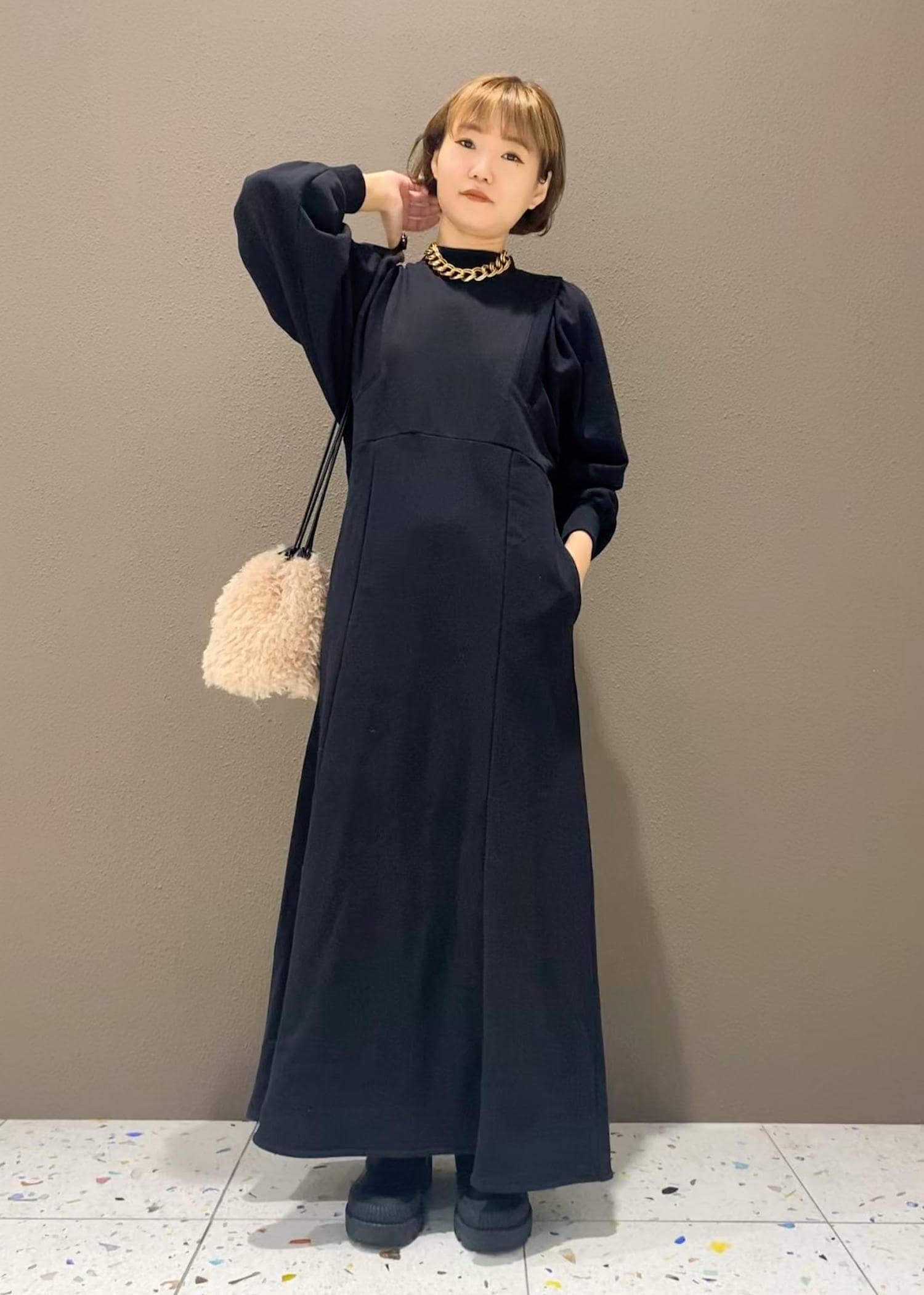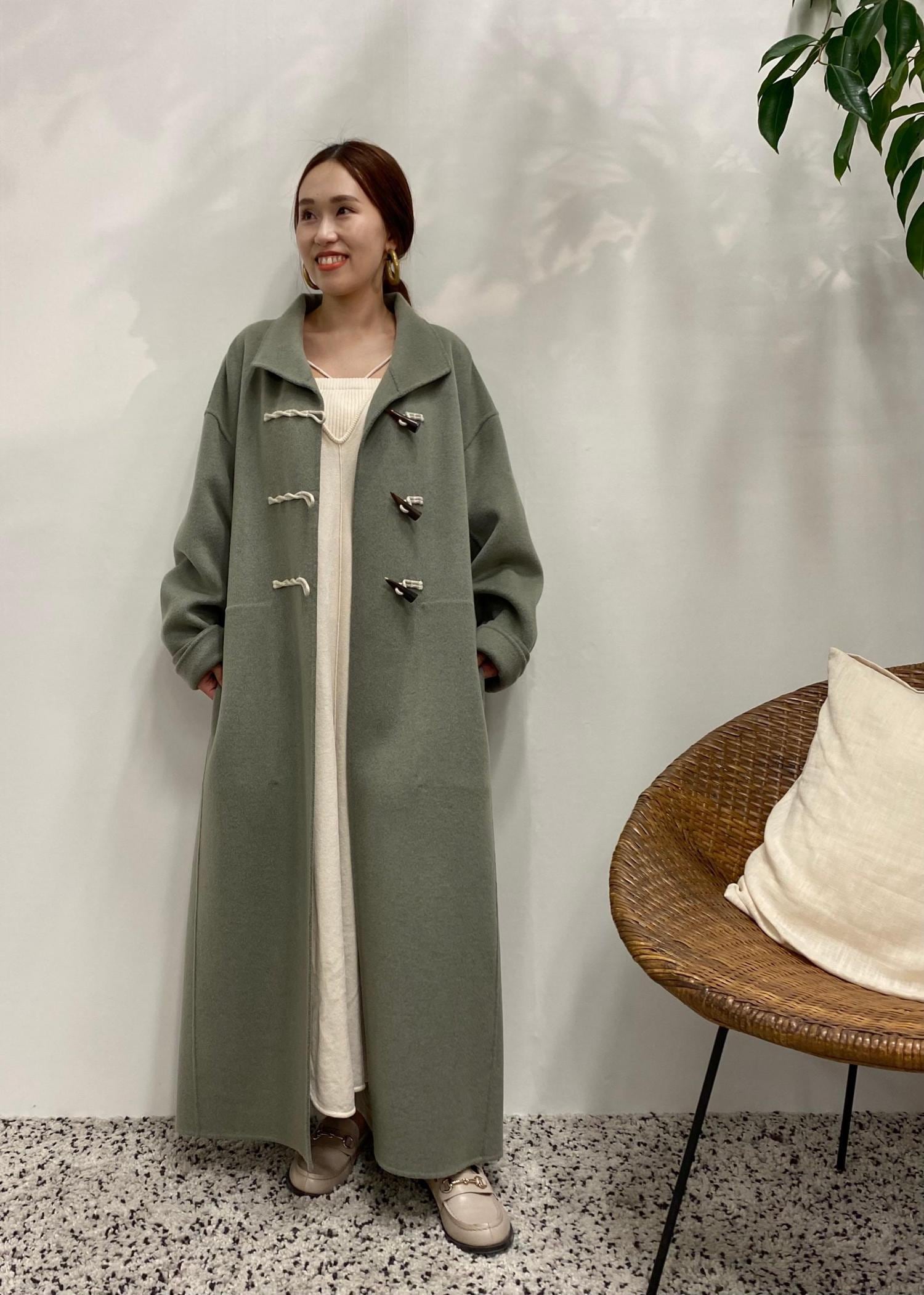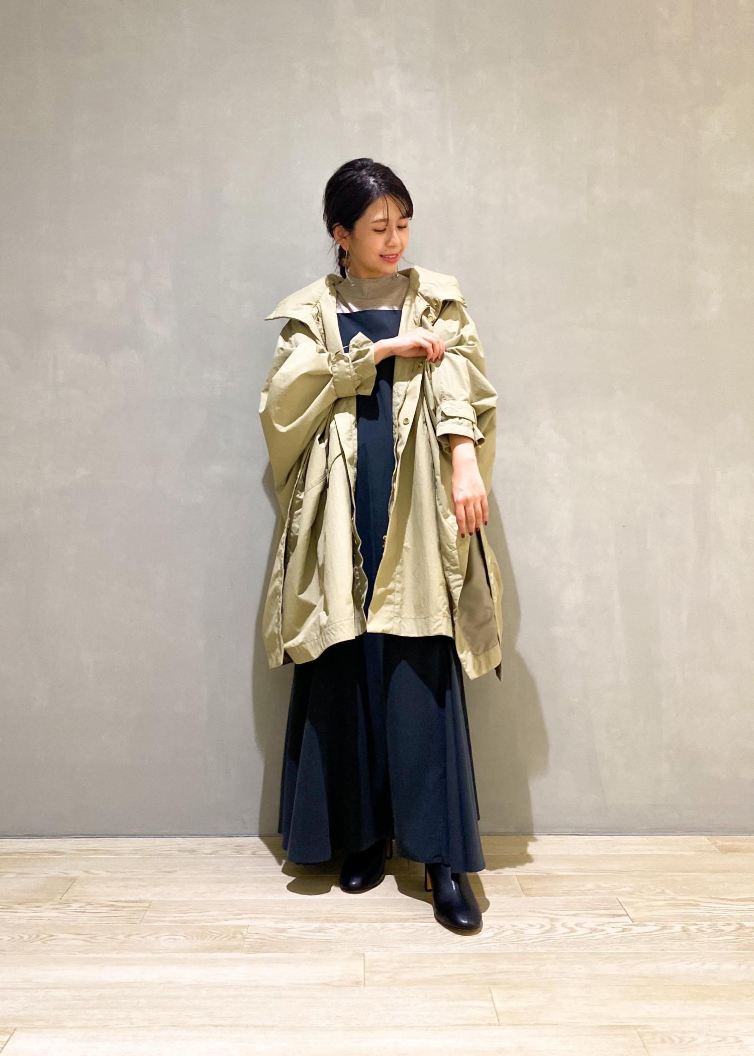 襟がスタンドカラーになっており、しっかり長めの着丈がとても大人っぽい印象です。
