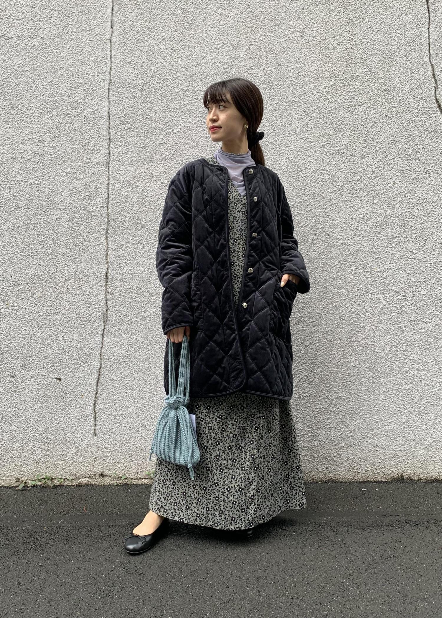 キルティングコートはボリューム感が出やすくサイズ感が悩みどころなキルティングコートも、Aラインですっきりした丈なら着ぶくれすることなく低身長さんにもおススメ。