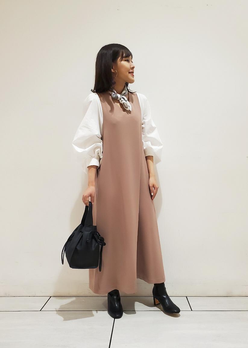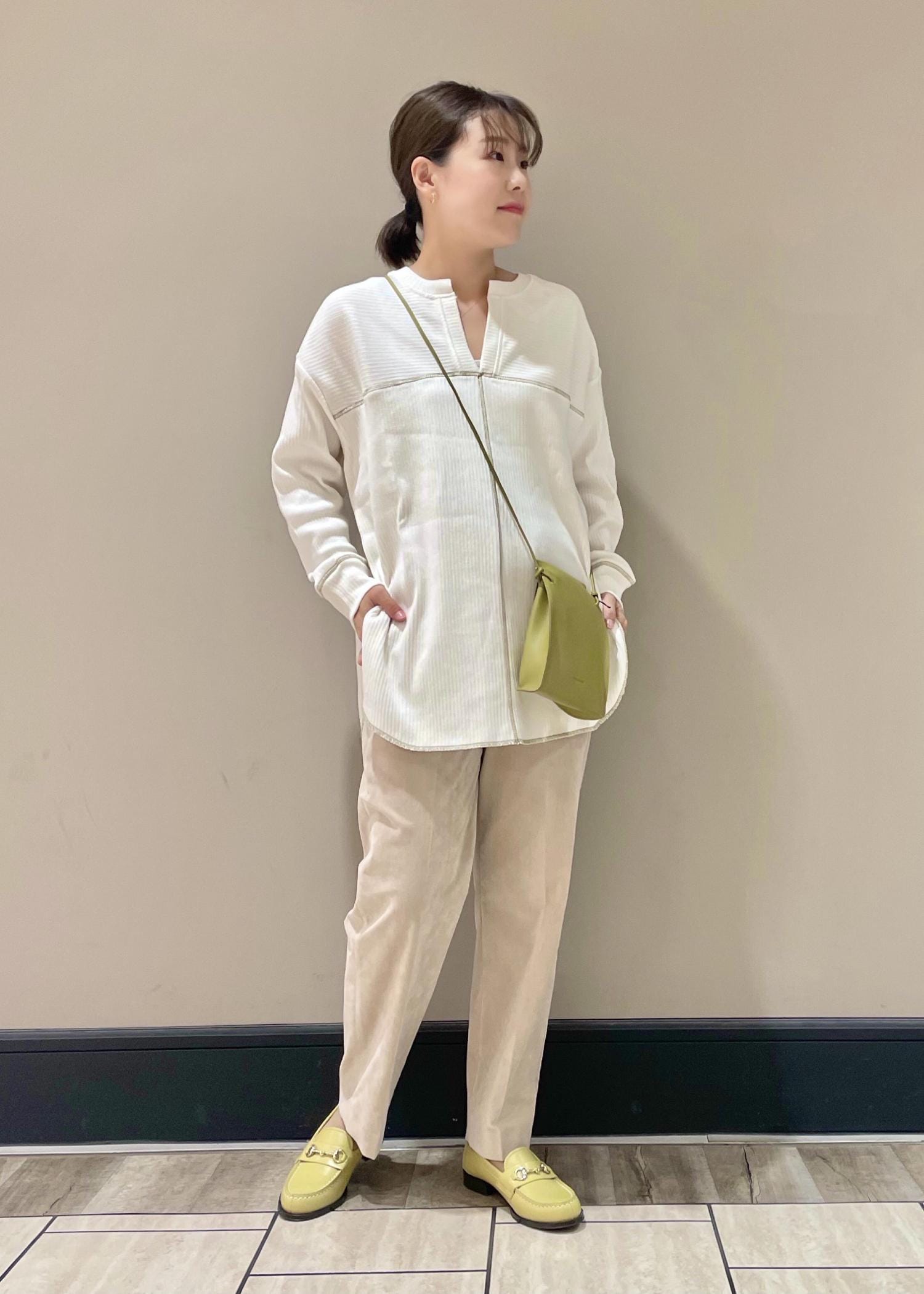 落ち感のある生地でボリュームが出すぎず、女性らしい雰囲気にしてくれます!