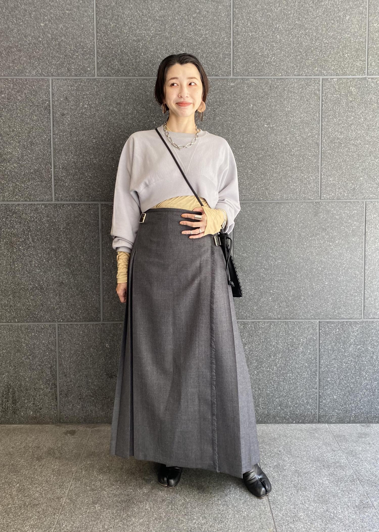 ベイカースカートはシルエットが綺麗なので、履くだけでスタイルアップします◎