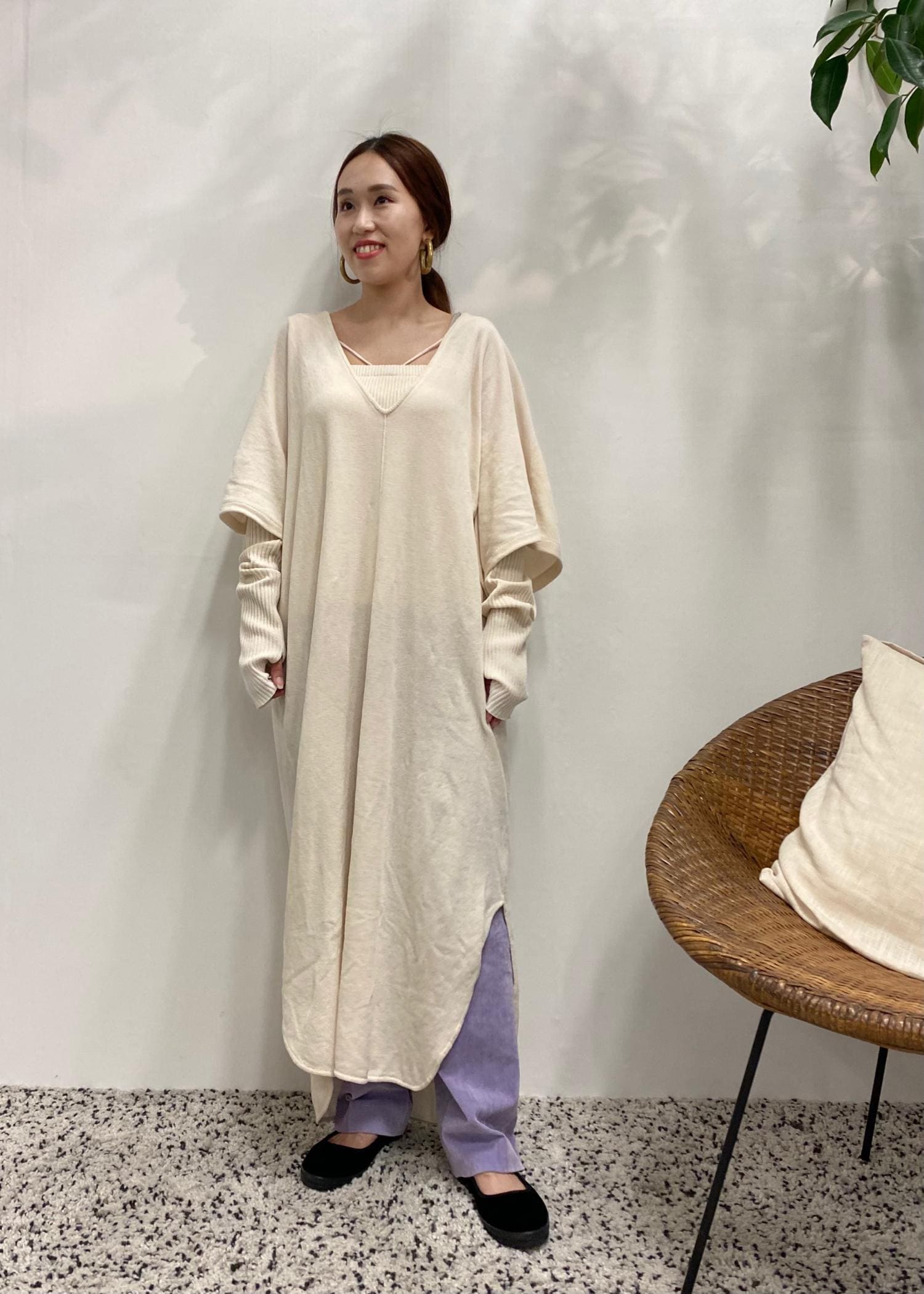 リラックス感たっぷりの creamy cotton アームウォーマー付きワンピースは、柔らかく包み込まれるような肌触りがとても気持ち良い。