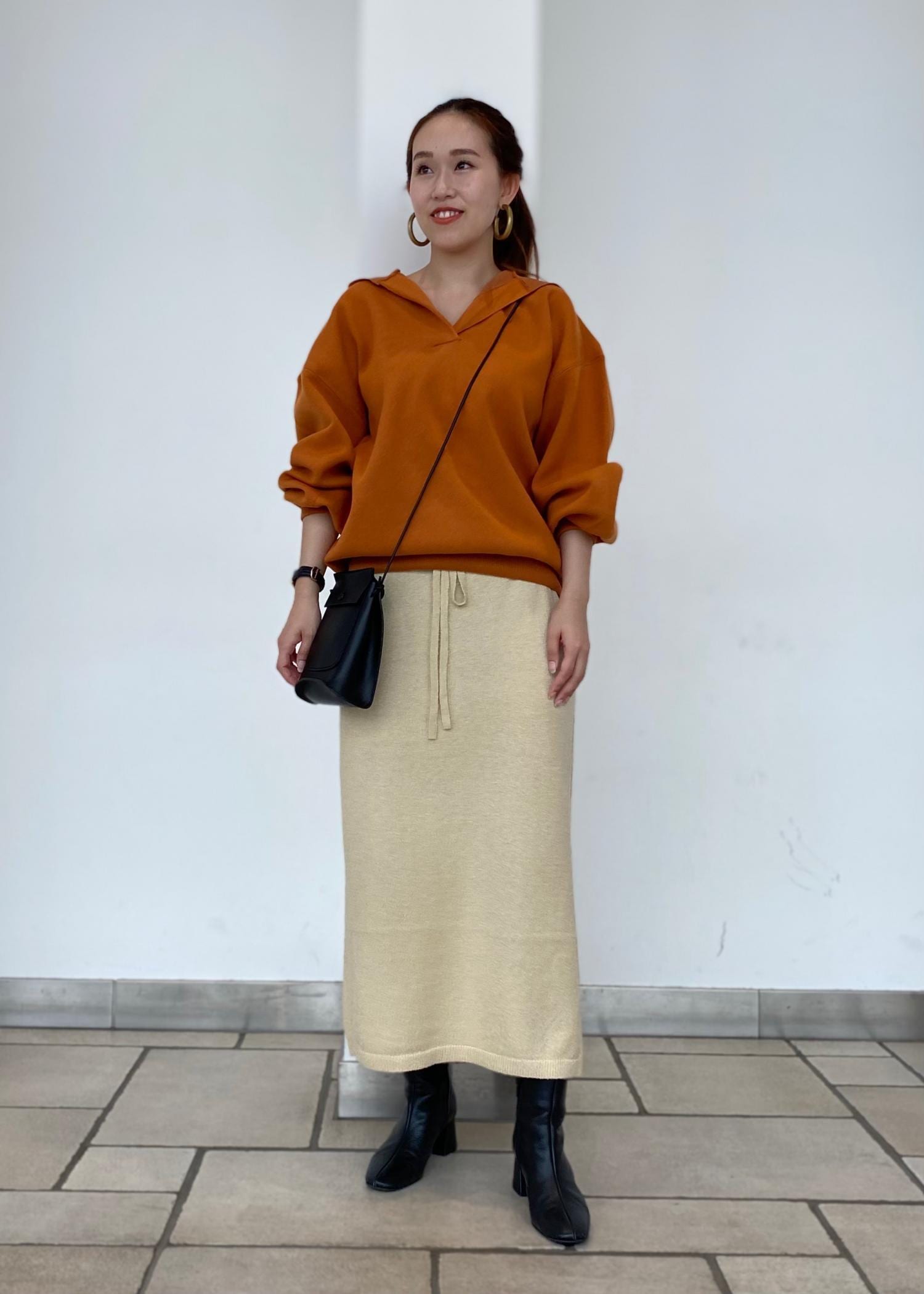 スウェットライクニットパーカーはイエベさんにおすすめな深みのあるオレンジ。