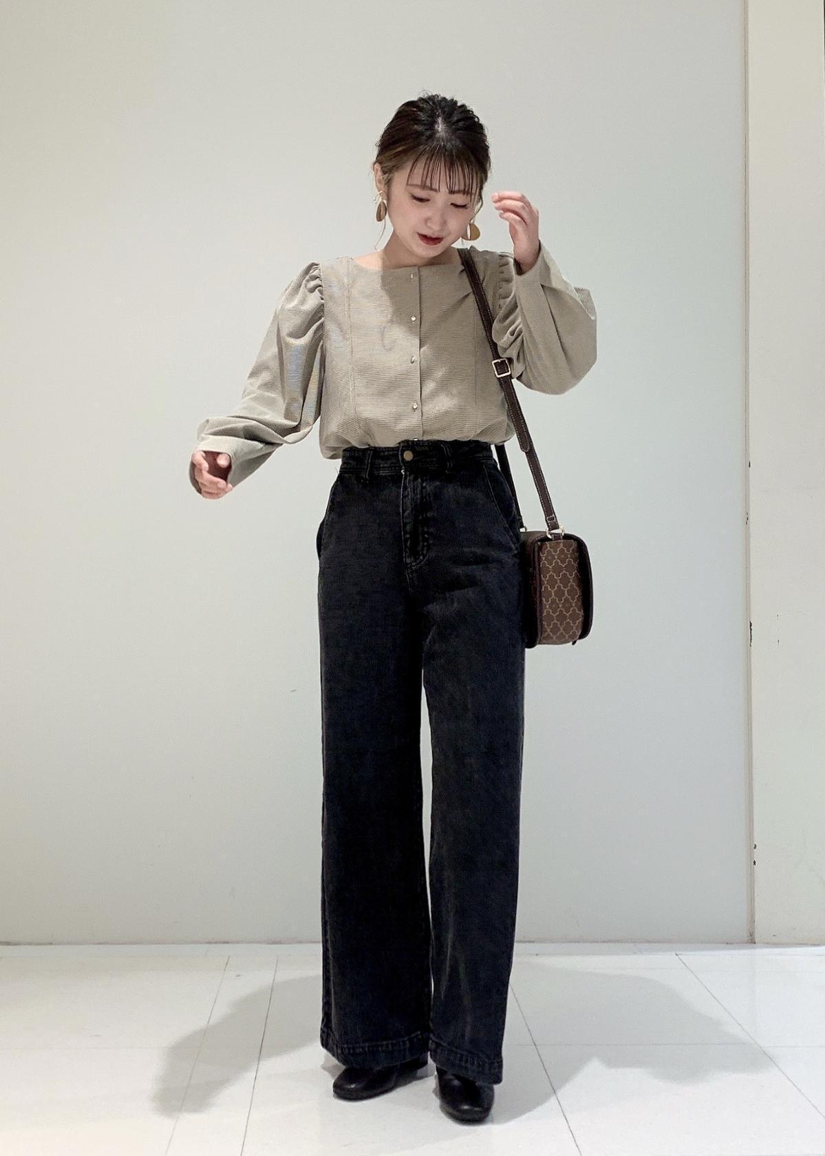 トレンドのボリューム袖トップスで、秋の大人カジュアルスタイル