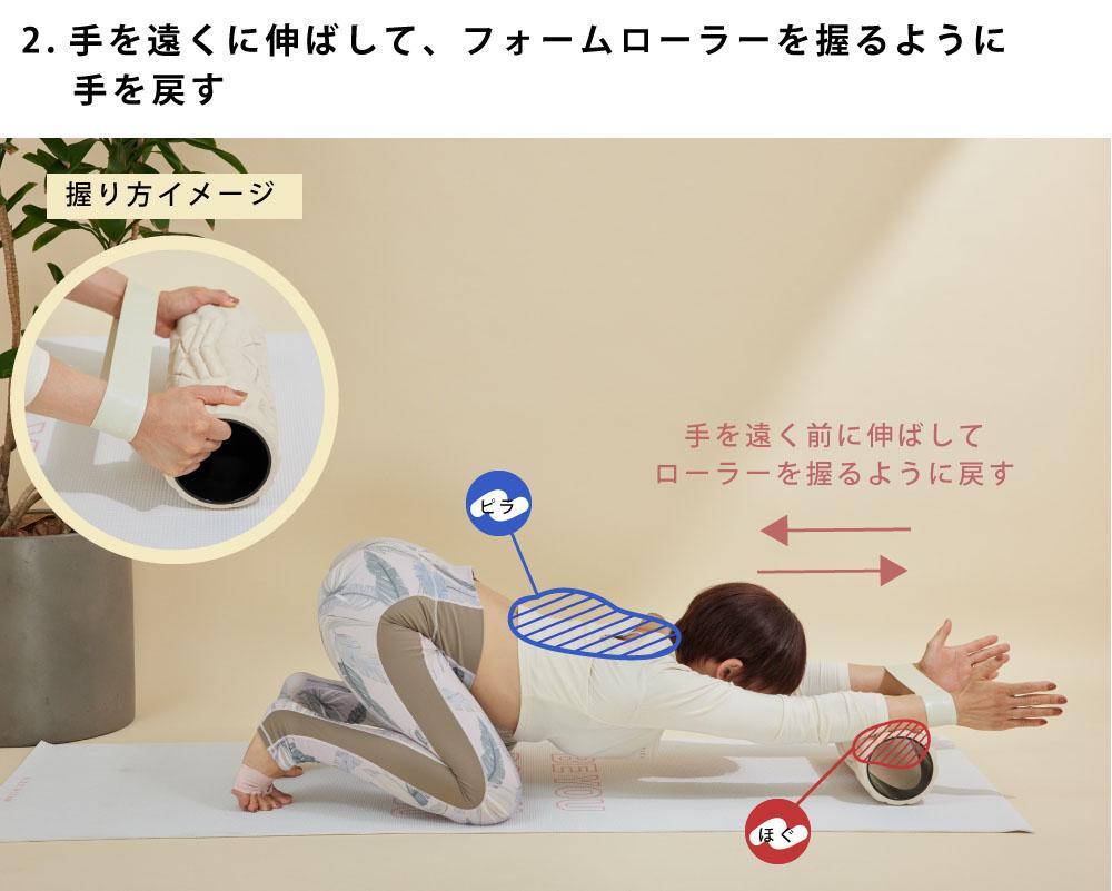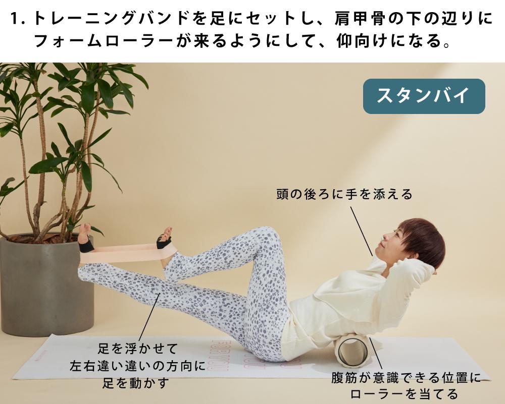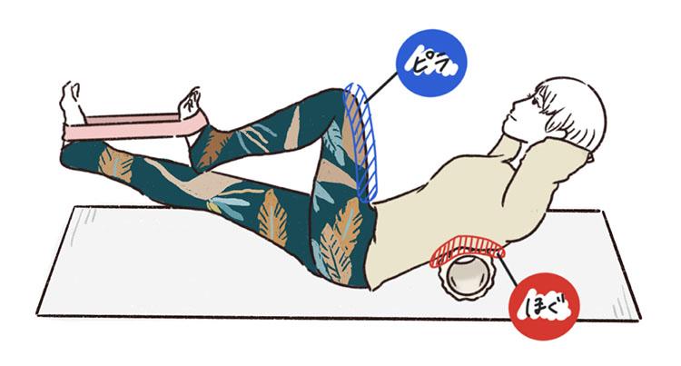 ローラーを使って筋膜・筋肉をほぐしながら、ピラティスの動きで体を鍛えます。
