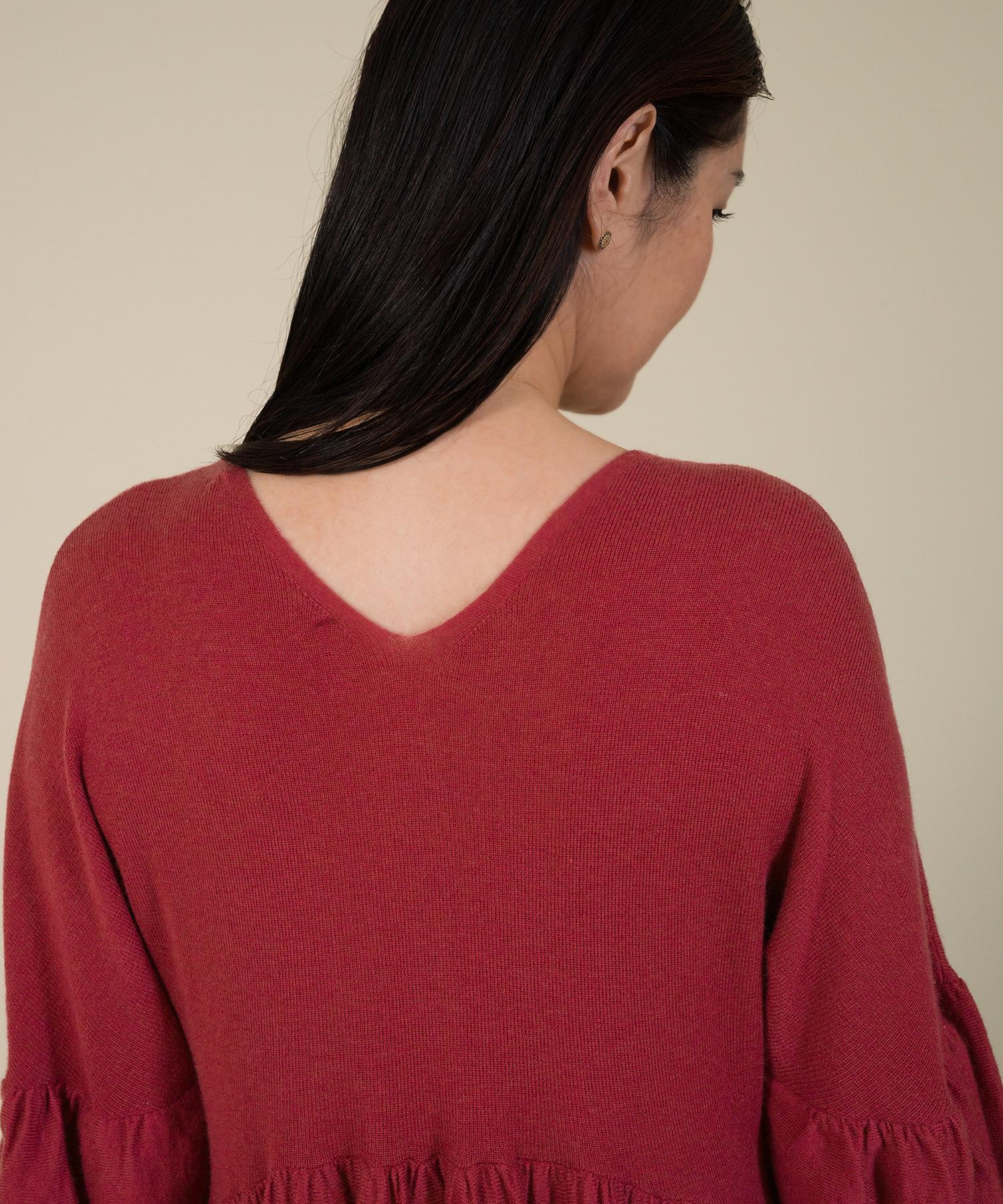 ボリュームスリーブと裾のフレアが特徴の「胡蝶」モデルのニット仕様。