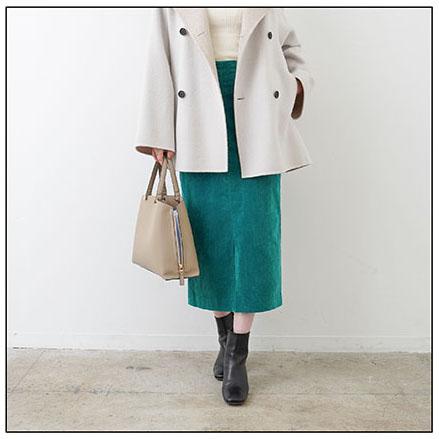 一つは必ず持っておきたい、名品スカート。今季は冬らしい深みのあるコーデュロイ素材を使用。腰の位置が高く見え、ヒップ周りをコンパクトに魅せてくれるシルエットに。ストレッチ抜群で着心地の良さも人気のポイント。