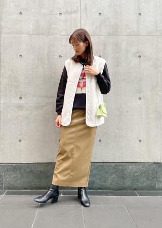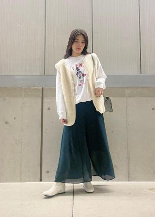 厚手のニットやスウェットなど、合わせるトップスを選ばずにさらりと羽織れるのも嬉しいポイント。