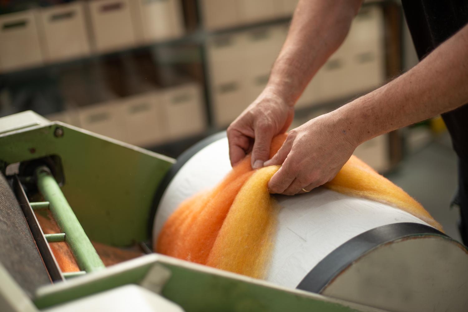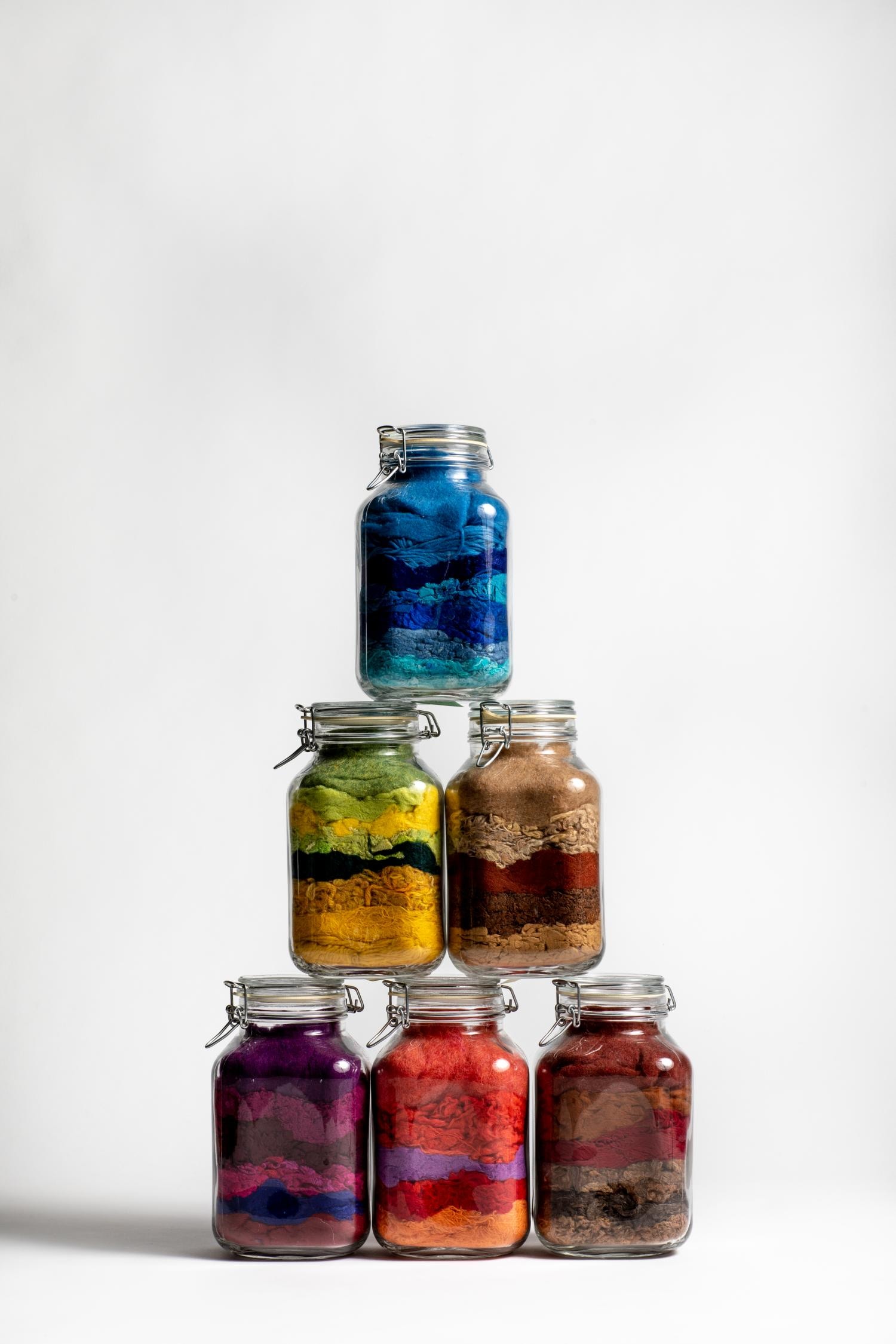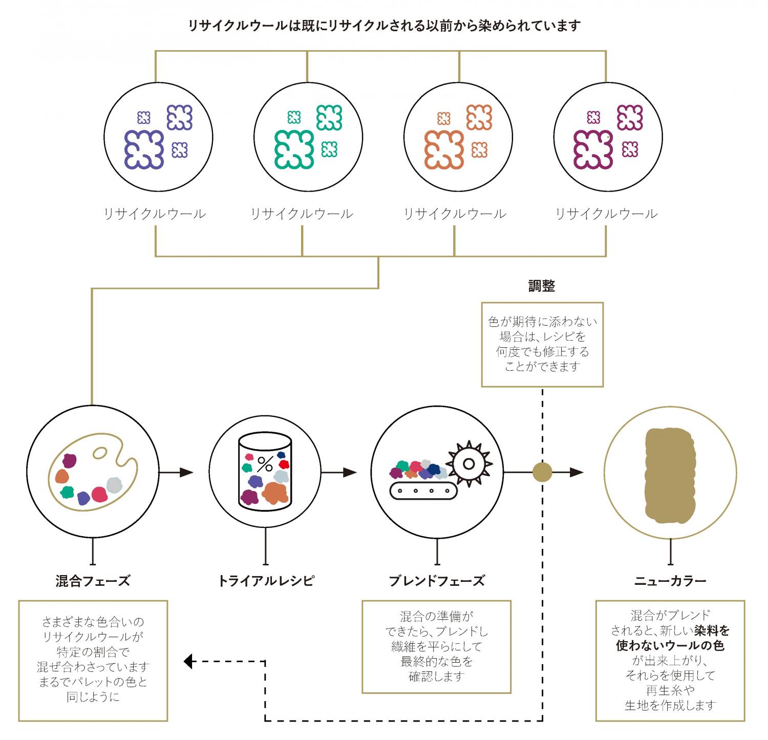 循環型社会で化学薬品や染料を使用せず、リサイクルウールの色を作成する技術のおかげで、様々な繊維や色合いを混ぜるだけで完成される新しいウールの色を考案することが可能になっています。