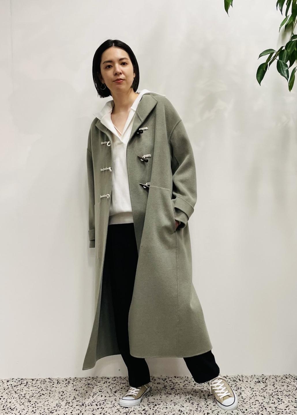 クラシカルな印象のダッフルコートデザインを、リバー仕立てに落とし込んでリラックス感のある印象にしたアウター。フードパーカーなどカジュアルアイテムともマッチするので、着用の幅が広がります。