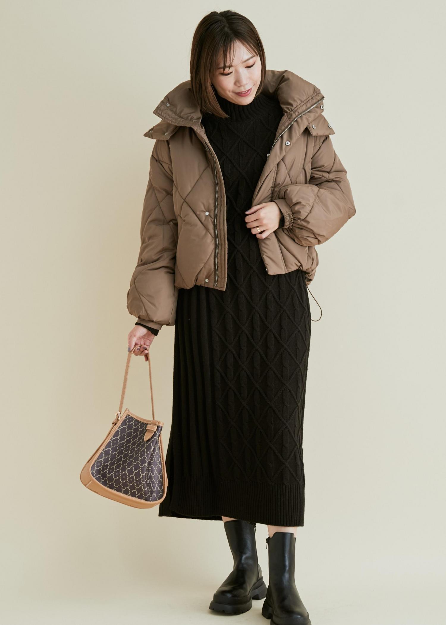 サイドプリーツでお洒落感UP!冬に大活躍ニットワンピコーデ