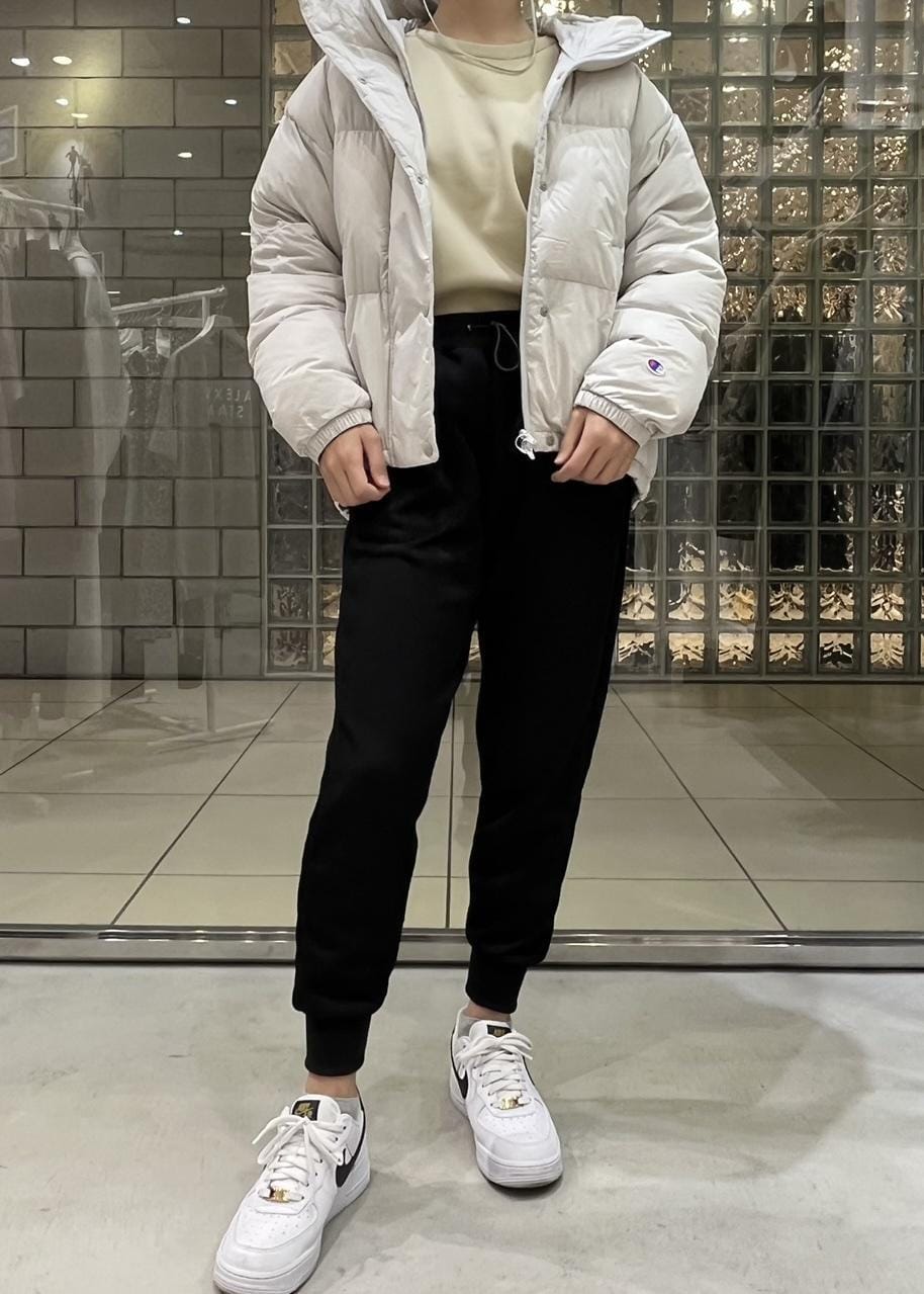 おうち時間を過ごしながら、ちょっとしたお買い物や急な外出時、サッと羽織れるダウンがあるととても便利。手元と左ポケットのChampionのロゴがアクセントに。