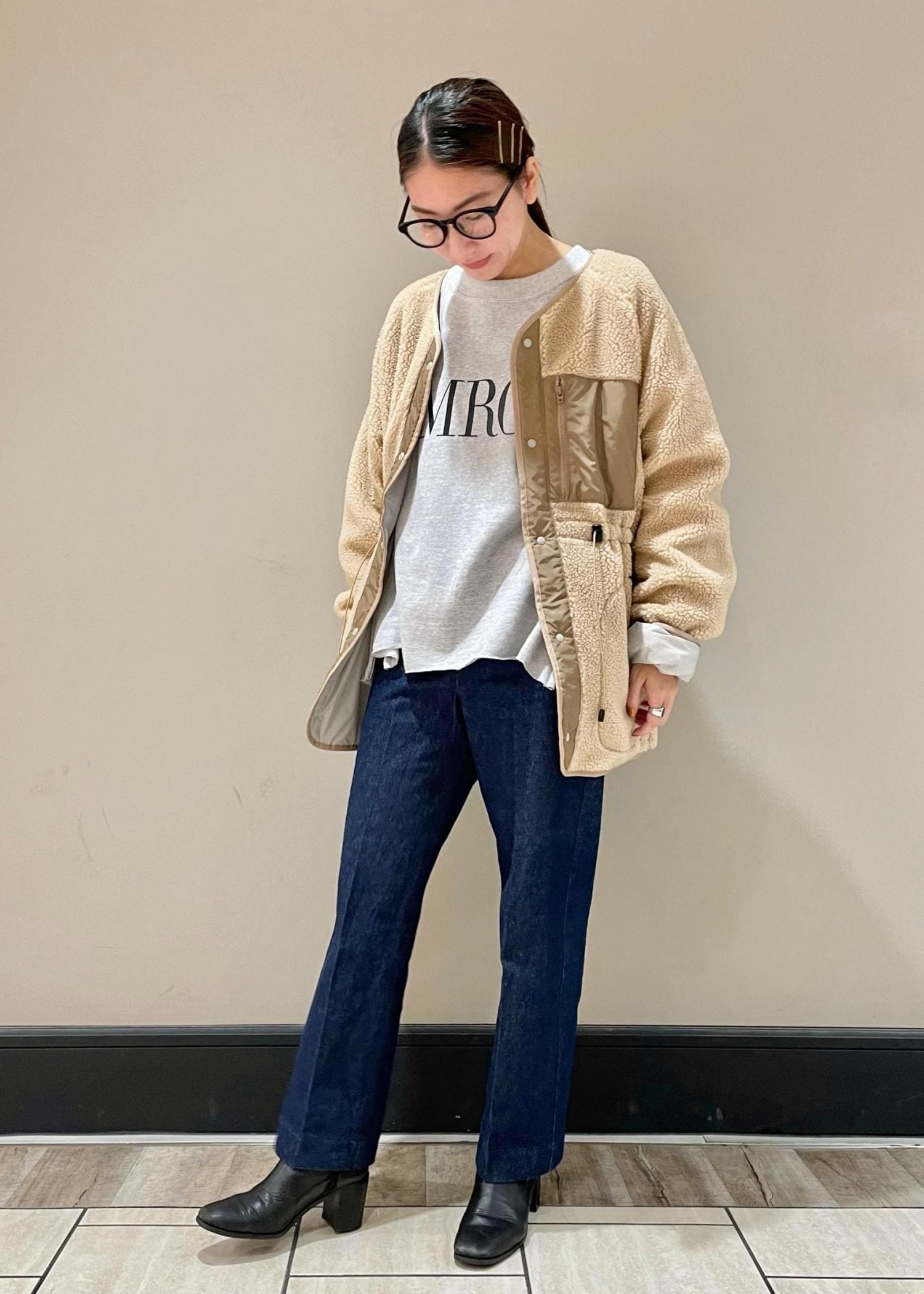 "LOFTECH(ロフテック)"というALLED社の高性能なリサイクル中綿を使用している為、ダウンと同じくらい暖かく、真冬でも着て頂けます。機能面は勿論、ミリタリーのモンスターパーカーを着想しているデザインとオーバーサイズ感が、着るだけでトレンド感とモードな雰囲気に。
