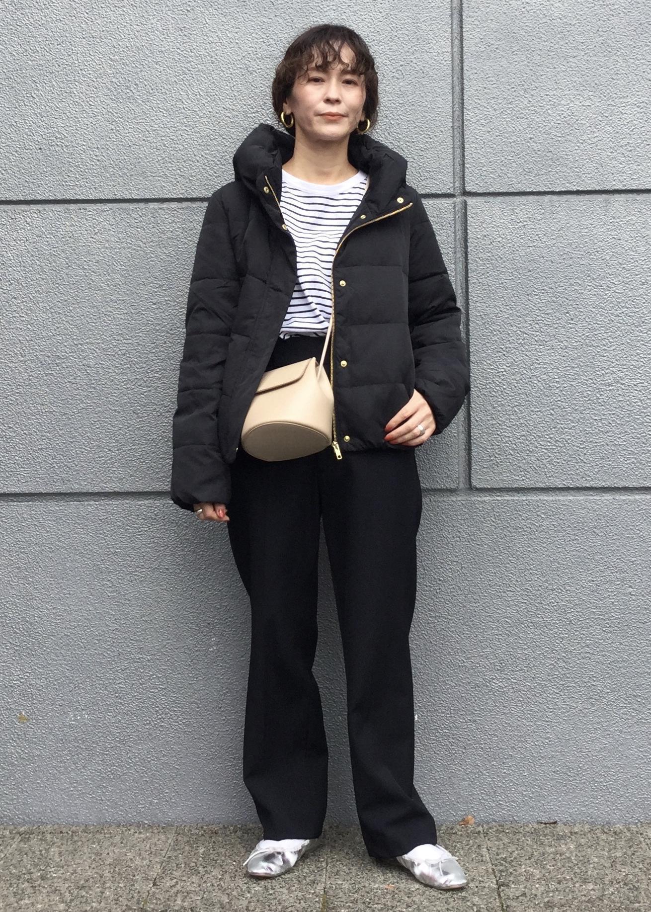 ダウンブルゾンは、着丈もバランスがとりやすく、スッキリとしたシルエット。様々なスタイリングにも合わせやすい、シンプルでジャストなサイズ感が綺麗見えしてくれます。着られてる感がでやすく、サイズ感に悩まれている方におすすめのダウンです。