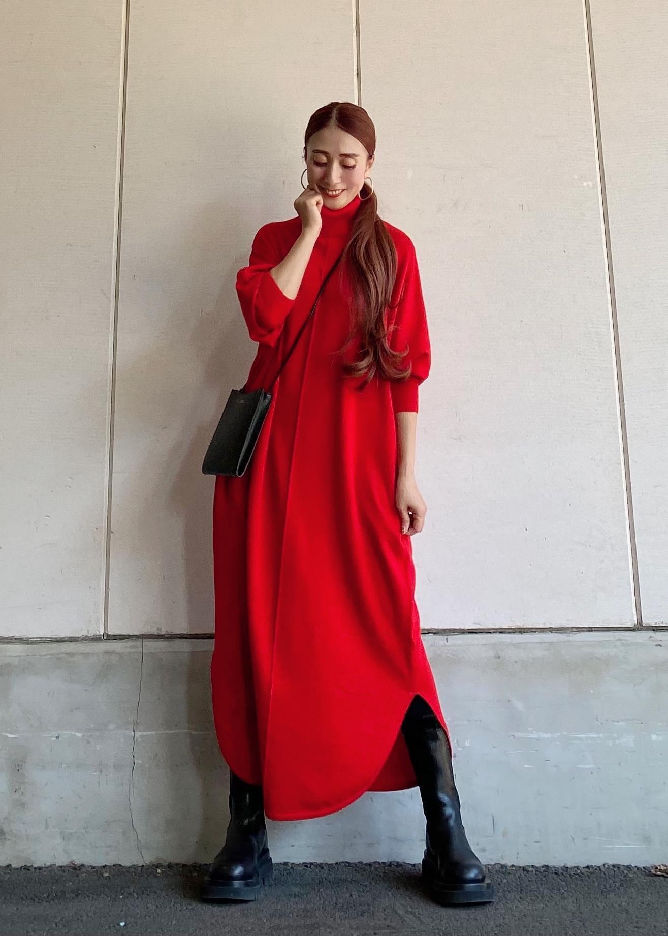 1枚で鮮やかなシーズンレス素材のワンピース。ドルマンスリーブでゆったり、しなやかなシルエットに袖のボリュームポイント。パンツやロングスカートをレイヤードするのもオススメ。