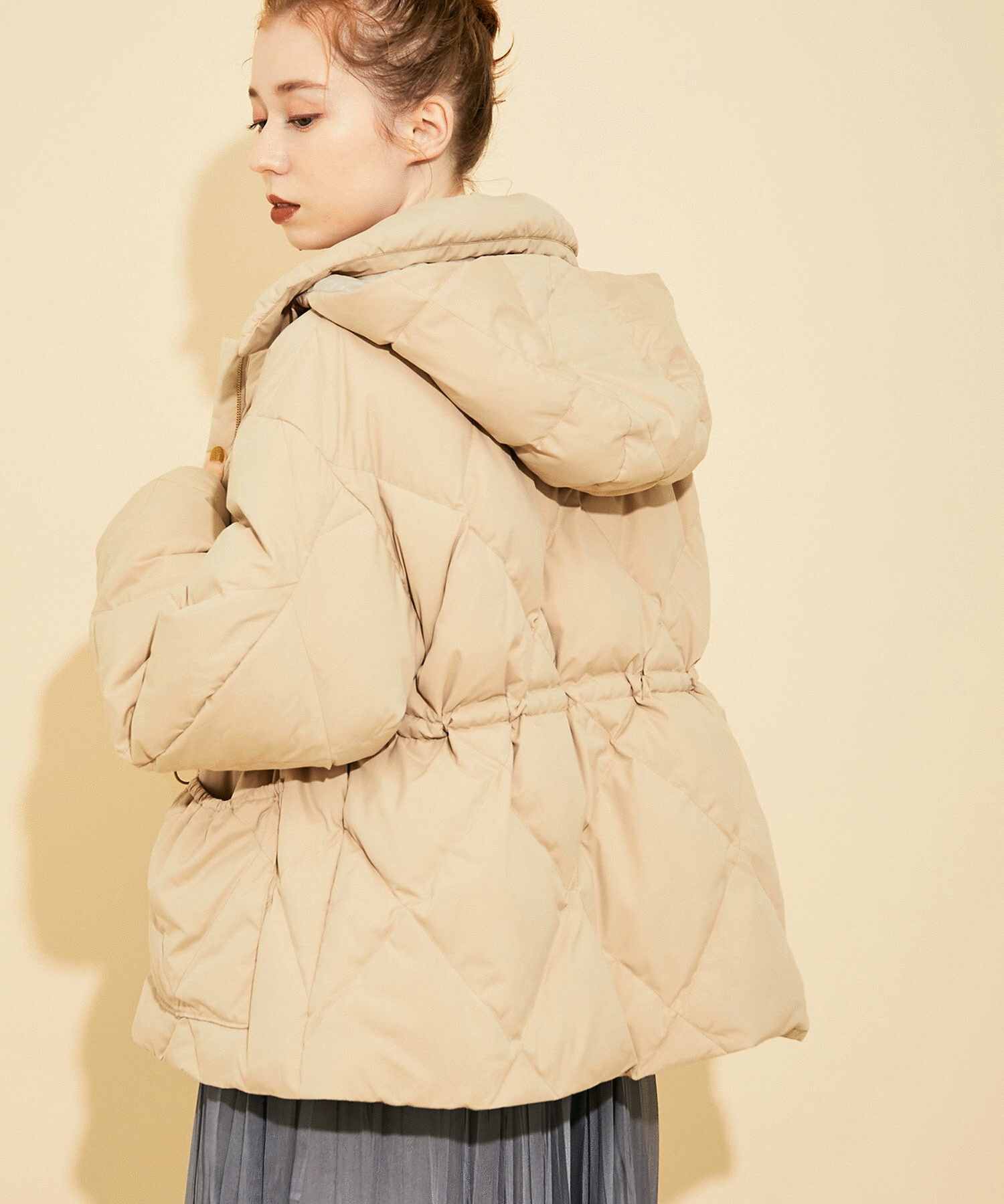 表面には撥水、帯電加工が施されたソフトでしなやかな微起毛素材を使用しており、太めのキルティングがアクセントになる1枚です。