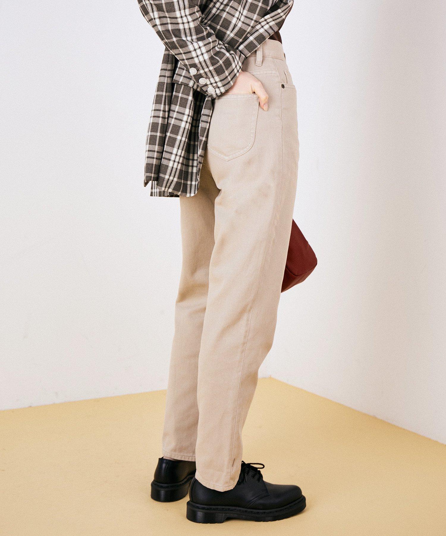 股上を深めハイウエストに設定し、脚長効果とヒップラインが美しく見える美シルエットは、トップスやアウターを選ばず着られる1枚です◎