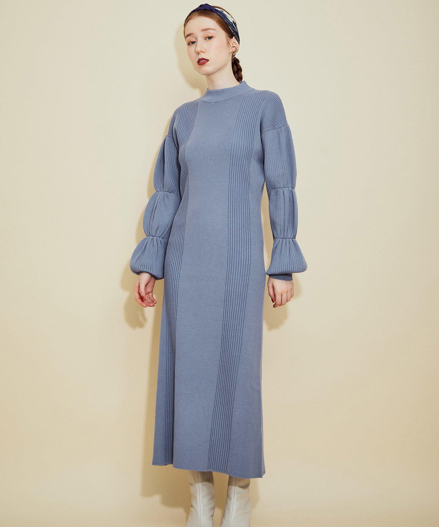パフスリーブウエストシェイプニットワンピース