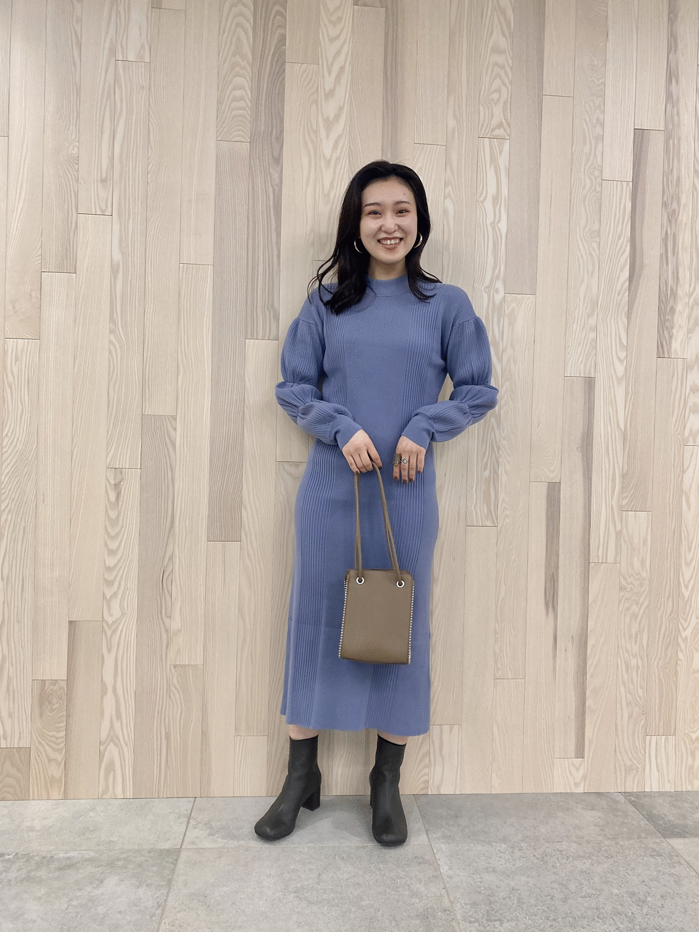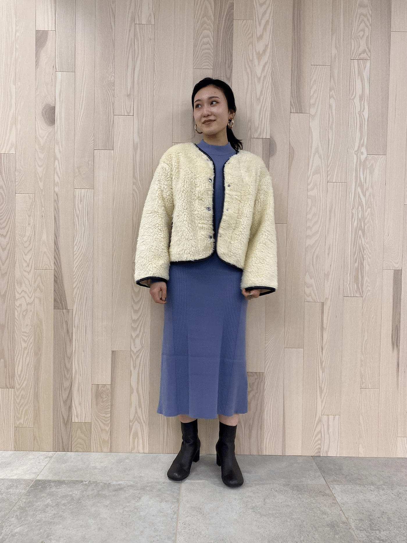 リブの縦ラインとウエストシェイプのシルエットは厚着になる冬場にもコーディネートをシャープに見せてくれます◎