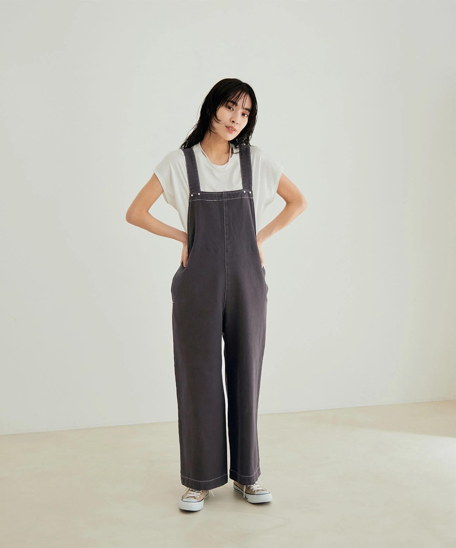 カジュアルなオックス素材を活かしたサロペットは、薄手のシャツやカットソーと合わせてこれからの時期に楽しめる1枚。