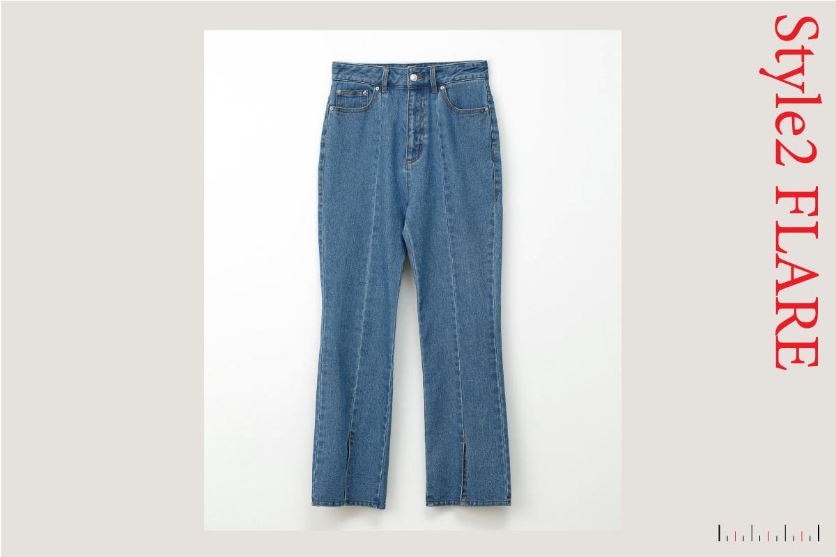 デザイン性のあるデニムが主役なので、トップスはあえてコンサバな雰囲気で合わせることで、トレンドも押さえつつも、ほどよく『遊び』のある大人コーデに。