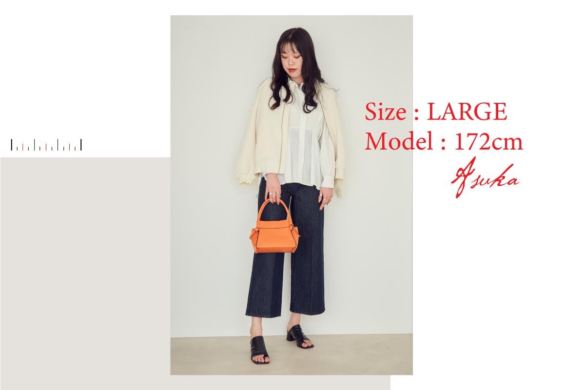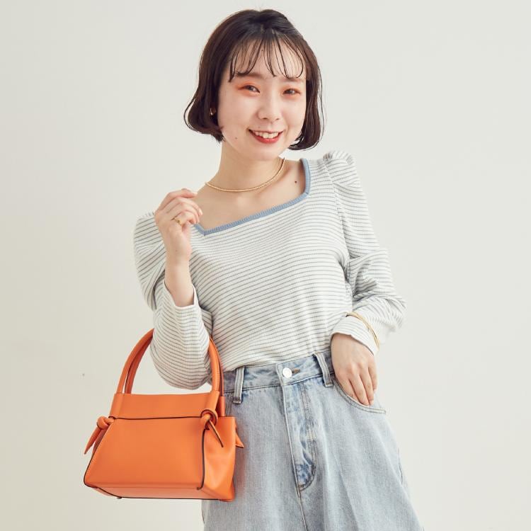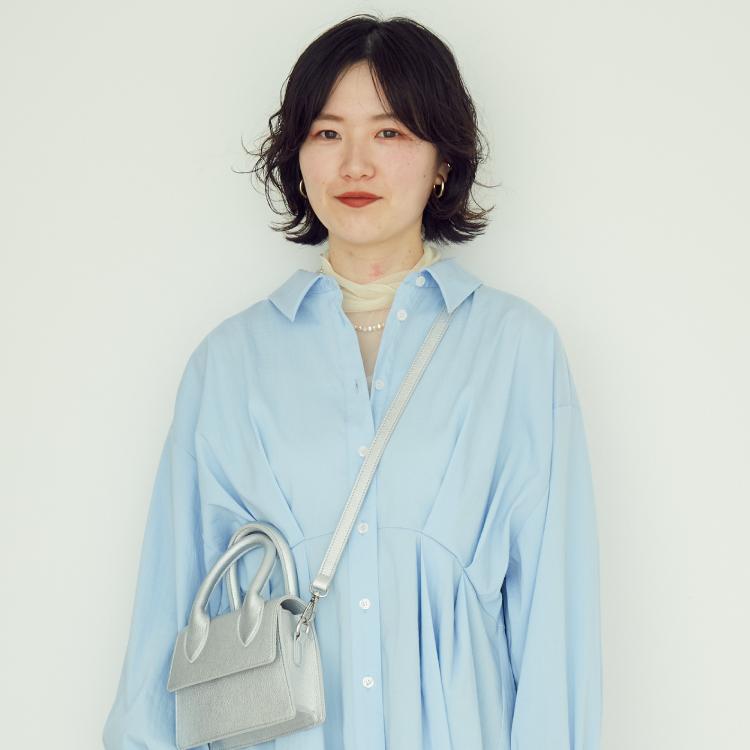 小さめのバッグを斜めがけにすることでポイントを作りました。