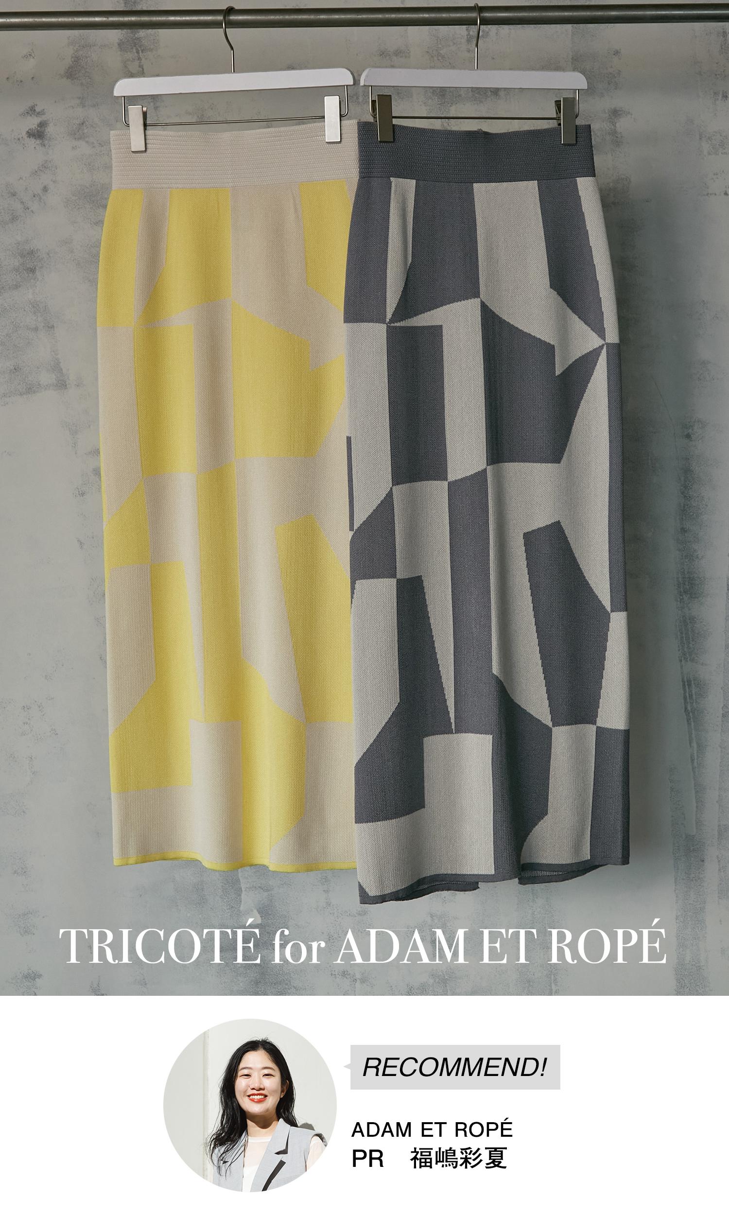 ニットの生地開発からテキスタイルデザインまで、オリジナルのものづくりにこだわり、全てのアイテムを国内で生産している『TRICOTÉ(トリコテ)』とのコラボアイテム。「『ADAM ET ROPÉ』だけでしか手に入らないオリジナル柄で、シルエットにもこだわって仕上げています。伸びが良いニット素材で、程よい厚みなので身体のラインを拾わず、とても綺麗に履くことが出来ます。締め付け感も全くないのでストレスフリーな履き心地です。まだ肌寒い時期には、スウェットなど、ボリュームのあるトップスとの合わせが気分です。もう少し暖かくなったら、薄手のカットソーやタイトなシルエットのものと合わせても良さそうだと思います」。