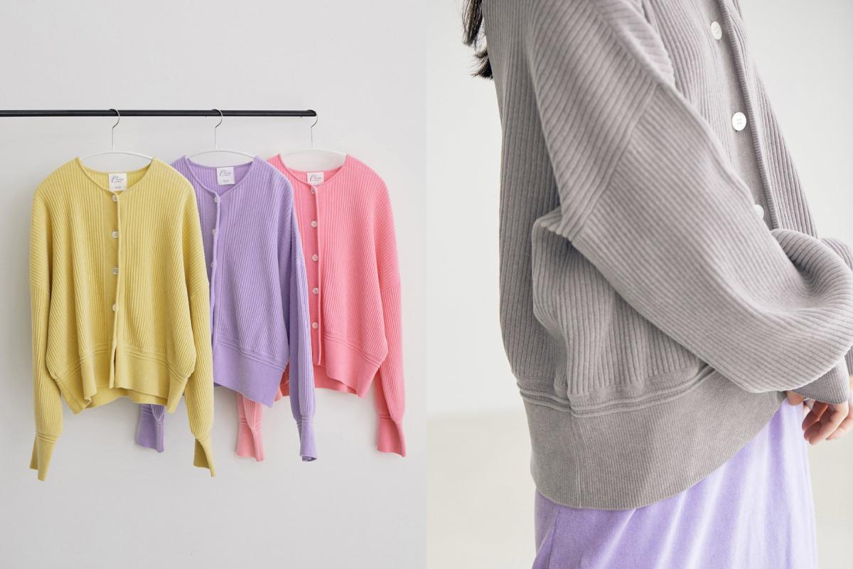 今年気分のクルーネックのカーディガンは春らしいピンクをチョイスしてみました!