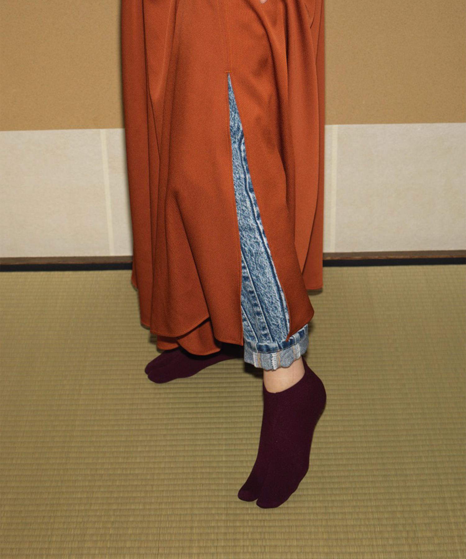 深めのスリットは足捌きもよく、縛りつけのない緩いシルエットで、気になるところを美しくカバーします。