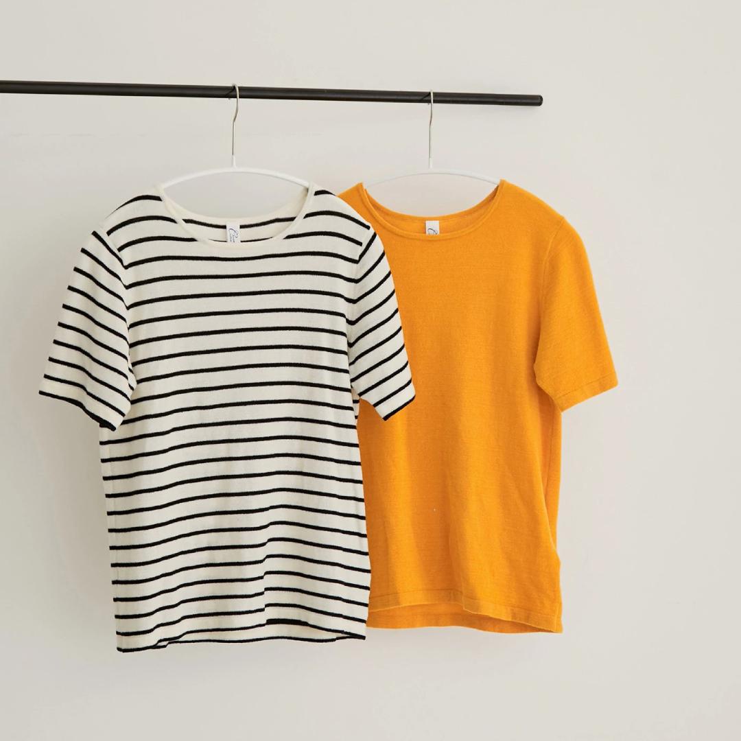 「一度着たら、忘れられない肌ざわり」はそのままに、これまでよりも繊細なオーガニックコットンのモール糸で編むことで、生地感を薄く仕上げました。