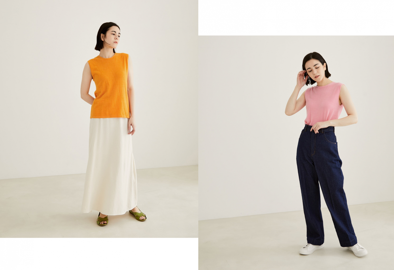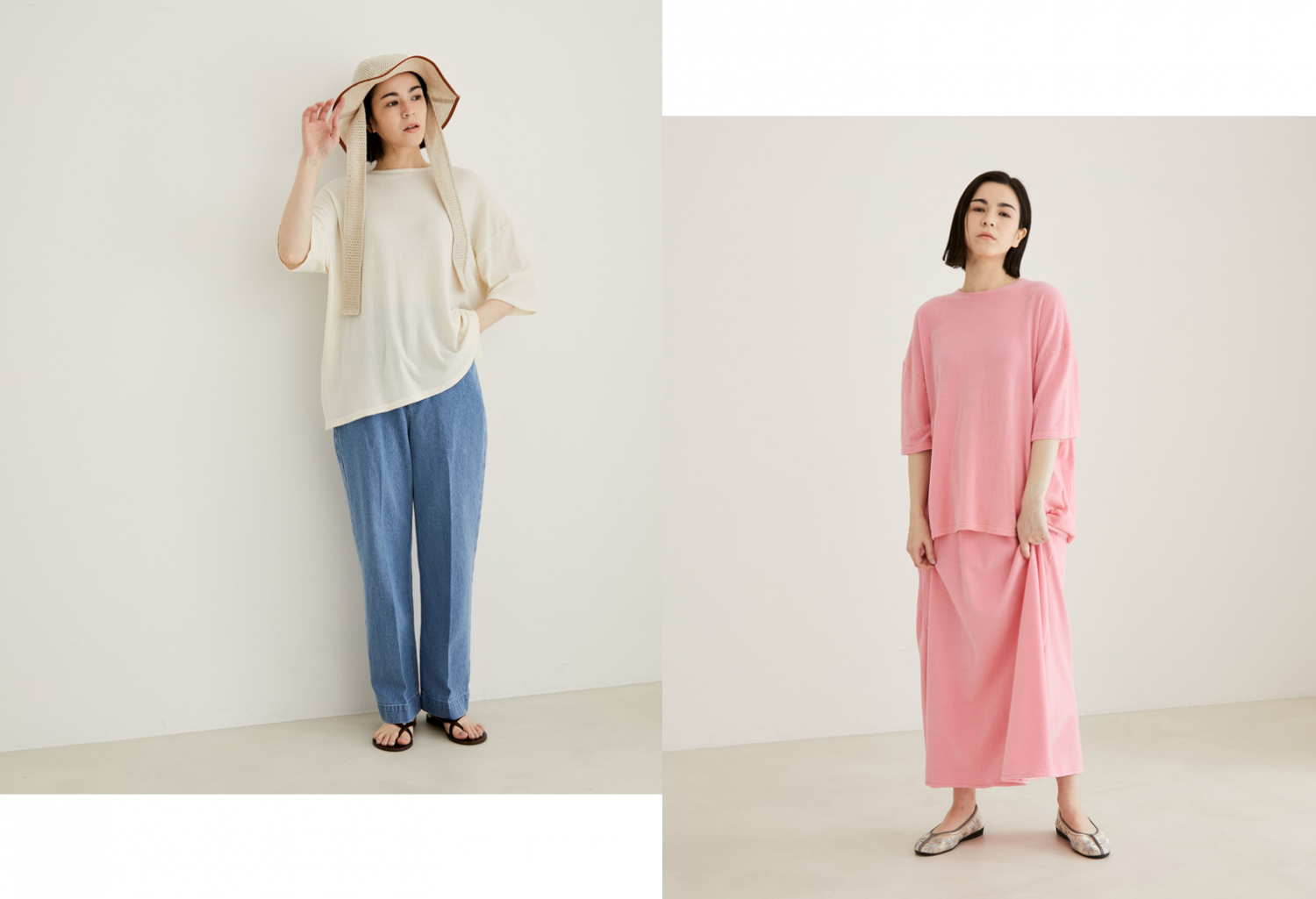 ジャストとオーバーのシルエットから選べるハーフスリーブTシャツや、カーディガン・タンクトップといった