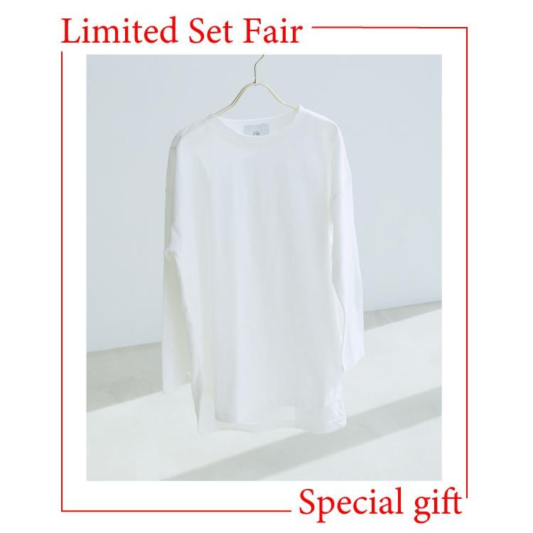 セットアイテムをご購入いただいた方に、どんなコーデにも合わせられる春夏マストアイテムのオリジナル白Tシャツをプレゼント!