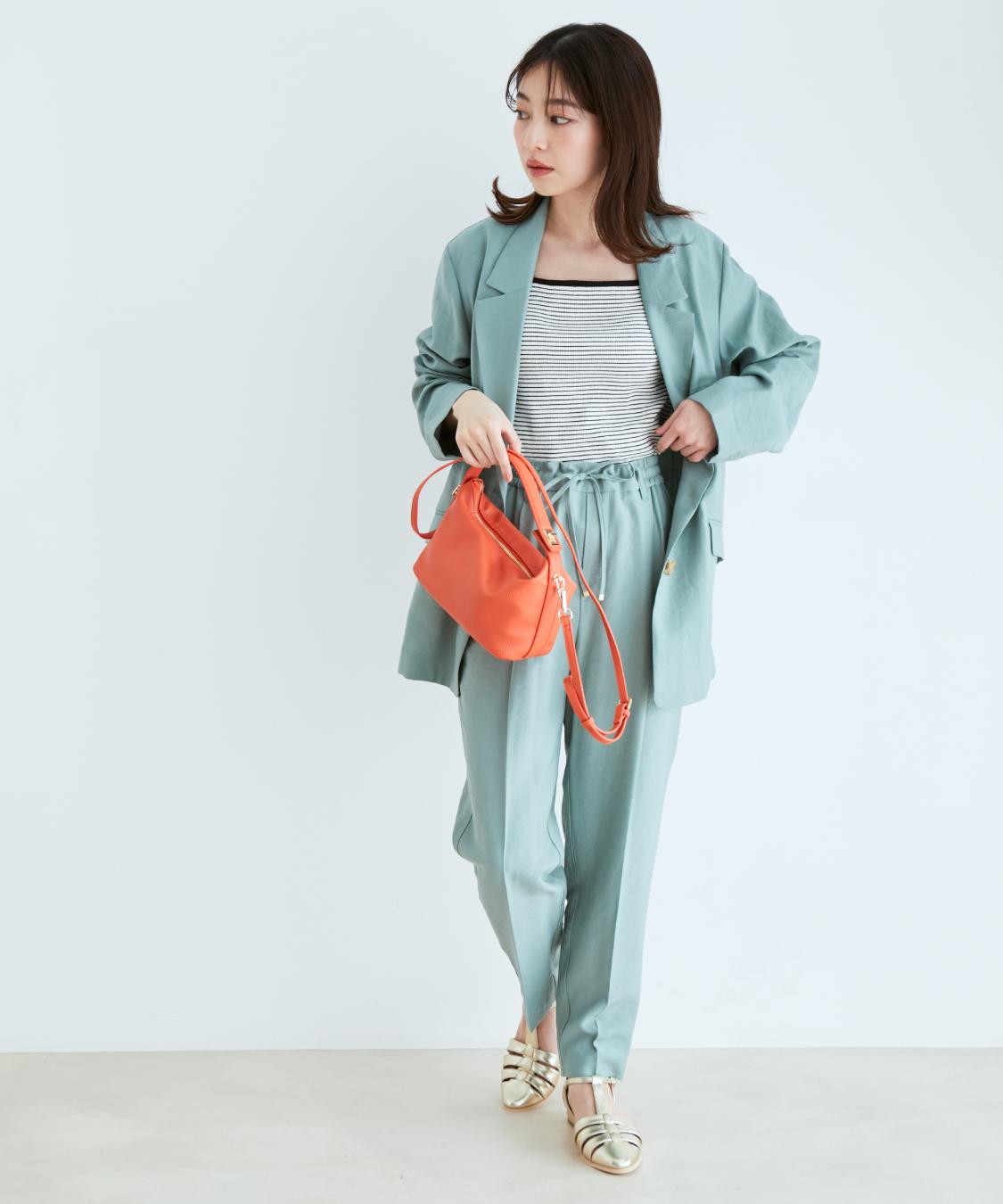 かっちりしずぎず少し抜け感が出るよう、インナーにはボーダー柄を合わせて。