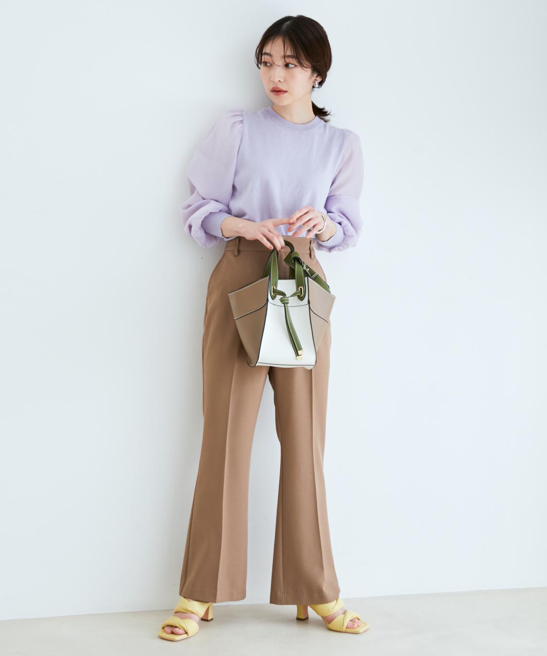 パンツと合わせて甘すぎず上品な仕上がりに。
