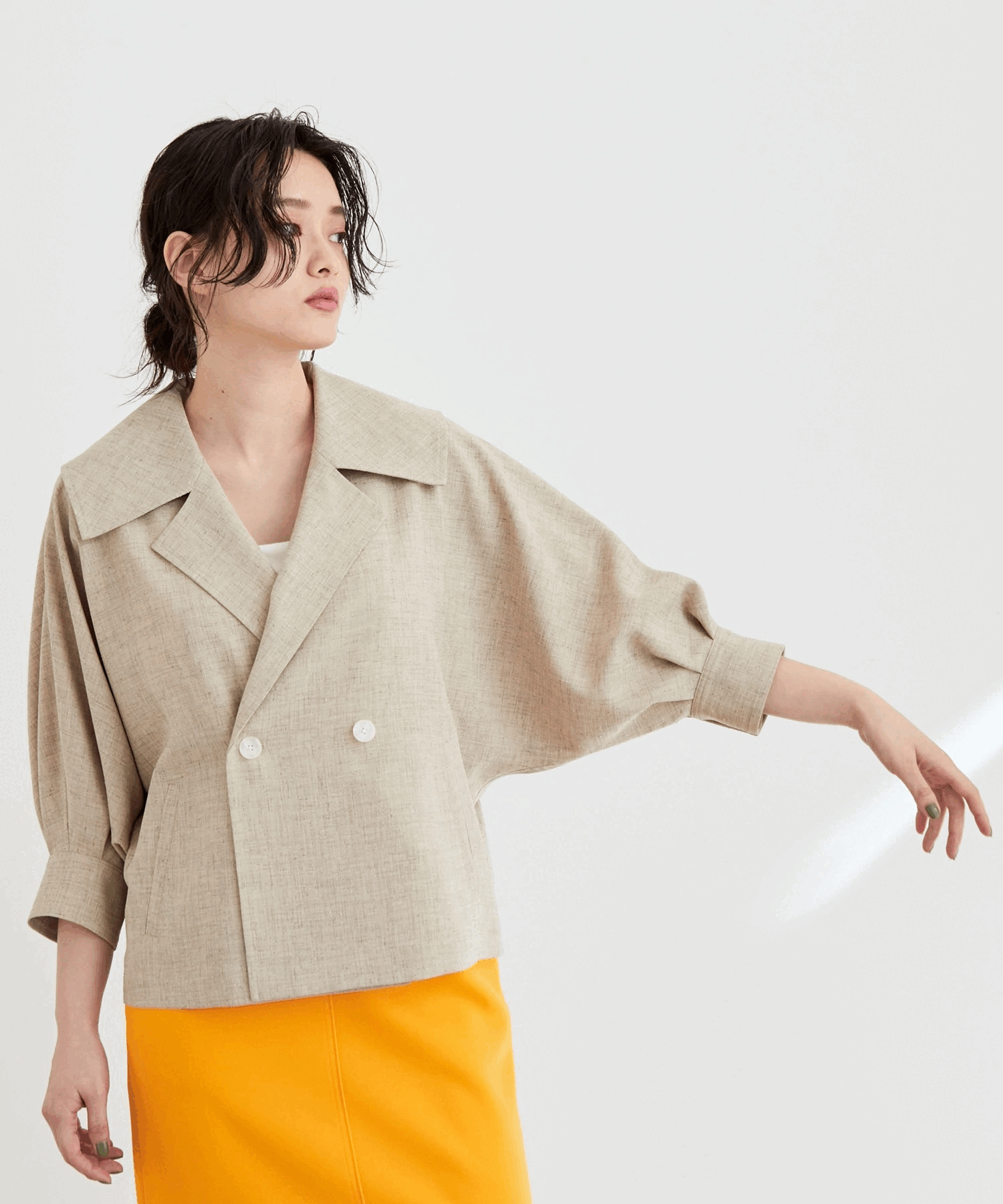 デザイン性のあるブラウスのように、さっと羽織れて着映える。麻のような風合いが表現された、涼し気な素材感とイージーケアが嬉しい新感覚ジャケットです。
