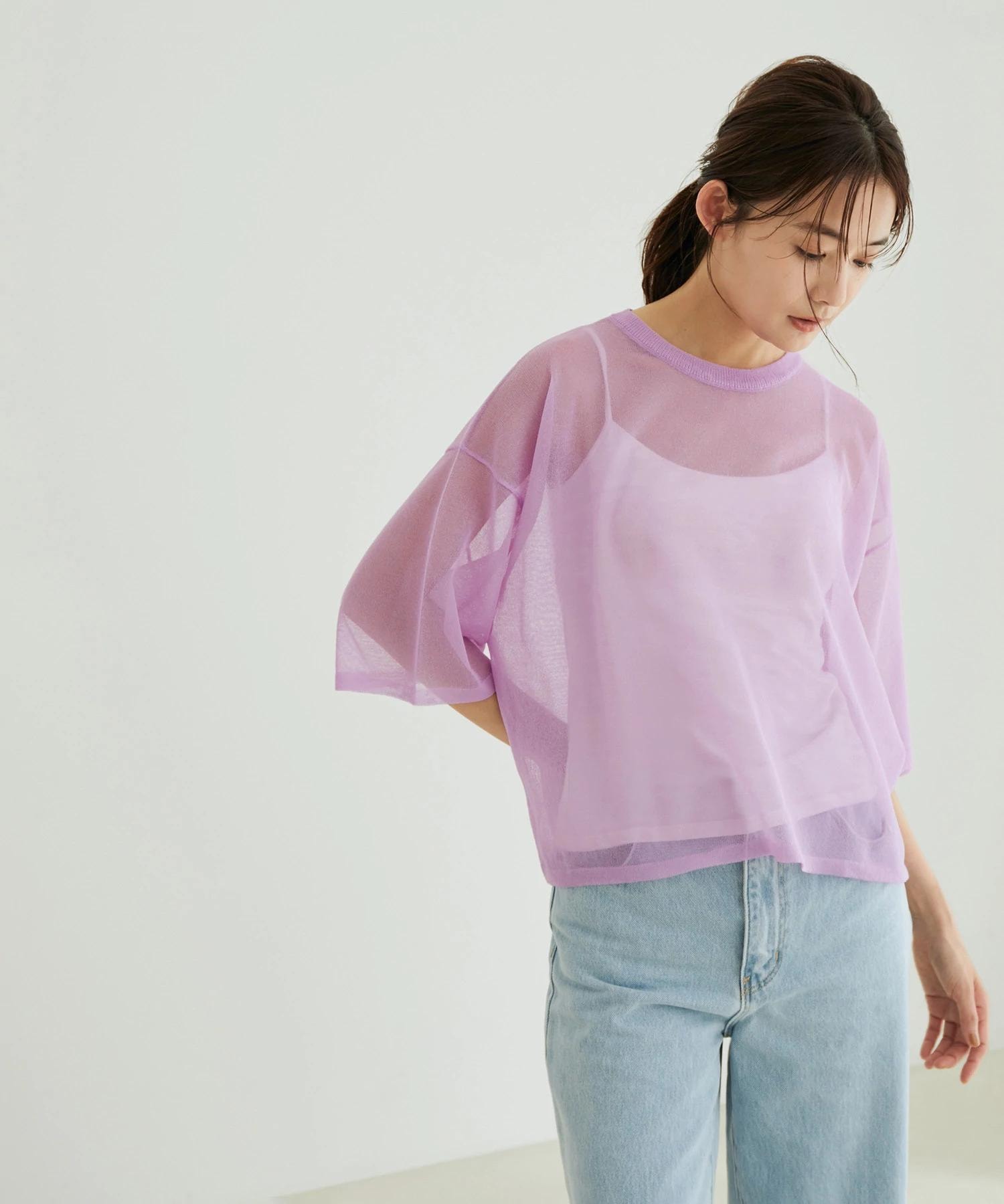 コーディネートの鮮度を上げてくれるシアーニットTシャツ。