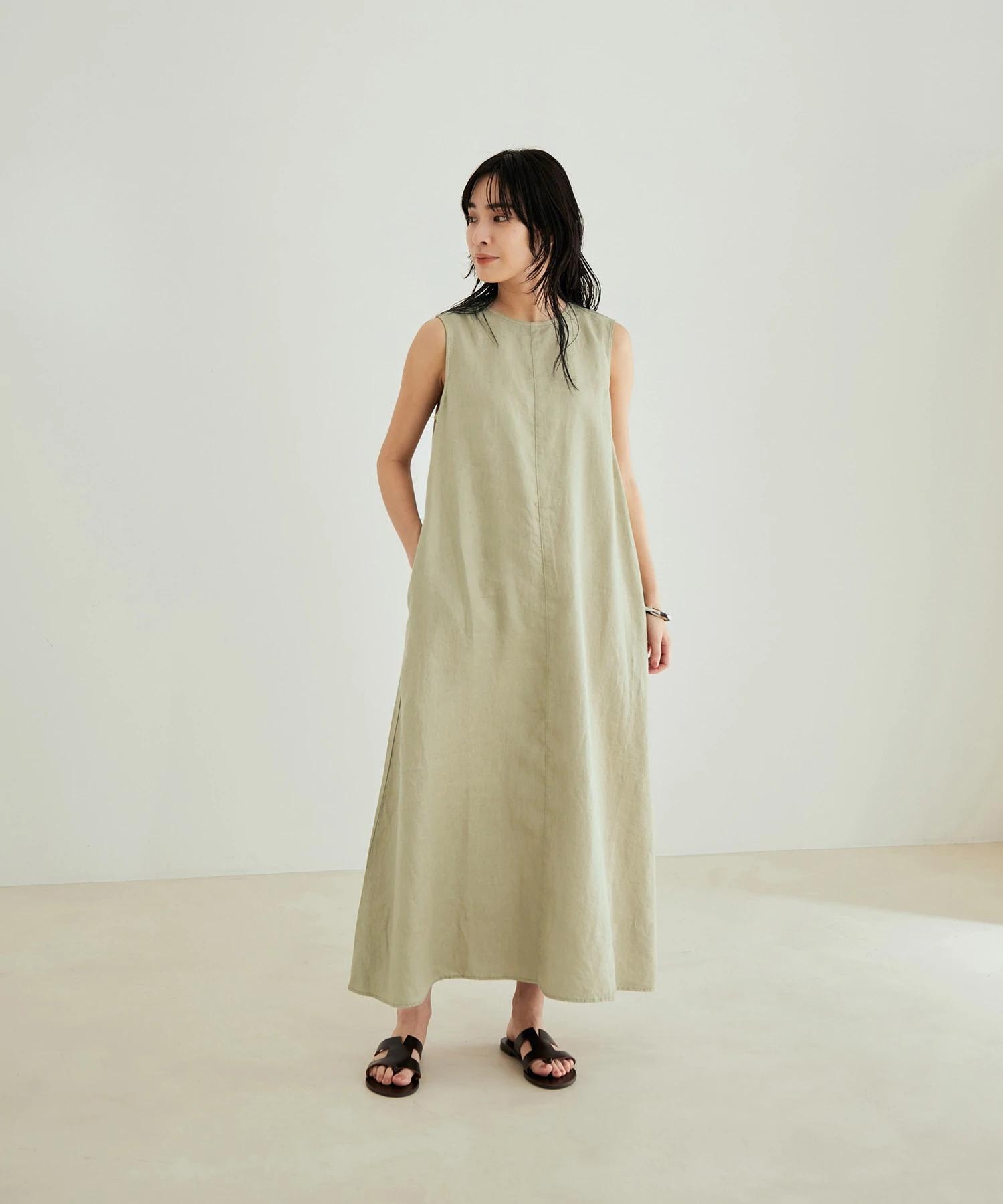 【セットアップ対応】麻ツイルノースリーブワンピース