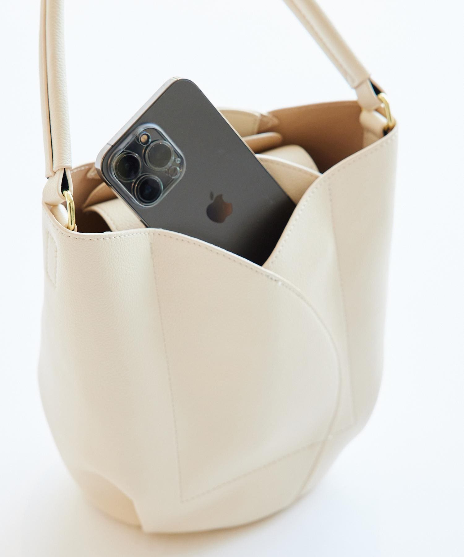 お財布やポーチ、携帯など持ち運びたい日常品がすっぽりと収まる容量です。