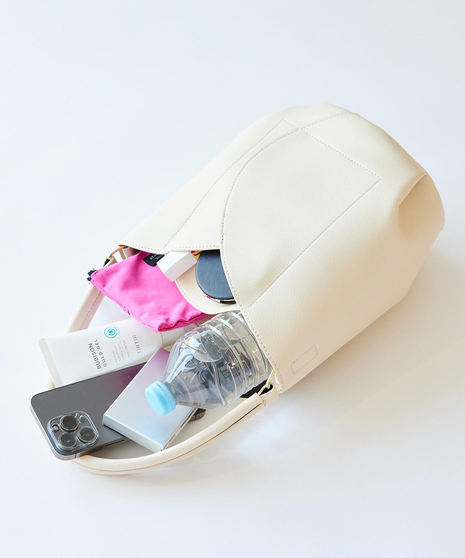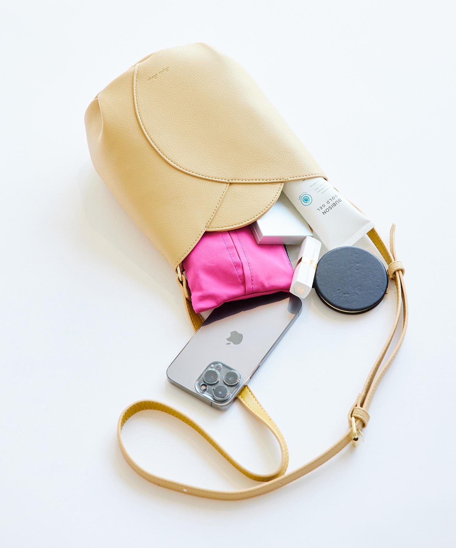 ペットボトルやお財布、携帯など持ち運びたい日常品がすっぽりと収まる容量です。