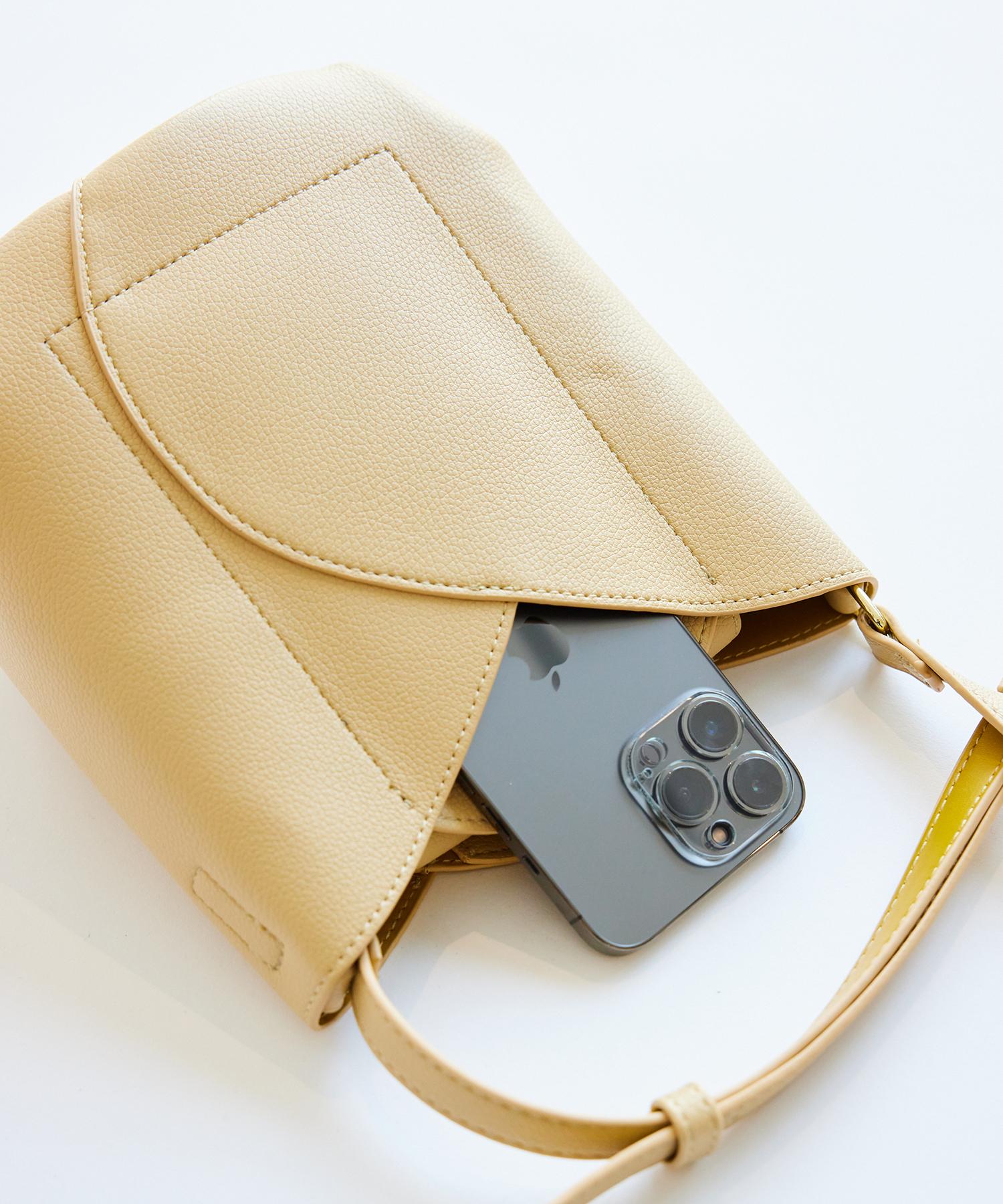 こちらも外側のポケットはスマートフォンがすっぽり収まるサイズ(写真はiPhone13Pro)
