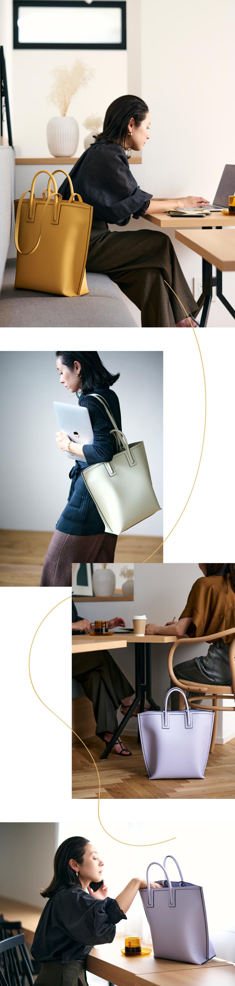 通勤にも心地よく使えるよう、PCも入るA4サイズで、収納や持ちやすさにこだわりました。