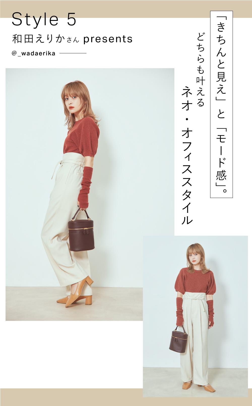 「このニットはアームウォーマー付きだけでなく、前後2WAY仕様なので、いろんな着こなしが楽しめるのがいい!形自体はシンプルなので、オフィスでもキレイめに着こなせると思います。ちょっと勇気がないな、って人はアームウォーマーの袖を伸ばせば、プルオーバー見えするし、着る人によって自在に形を変えられるところが新しいなって思います。」