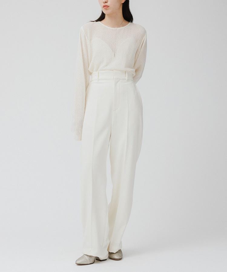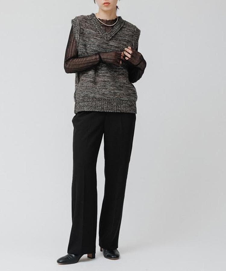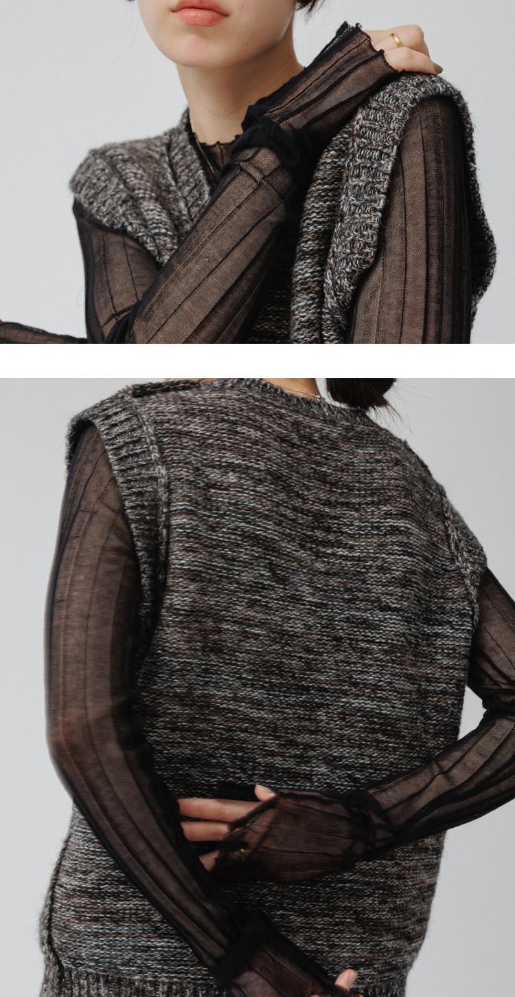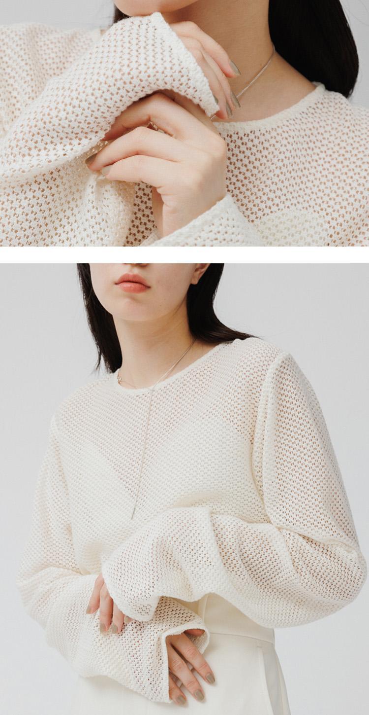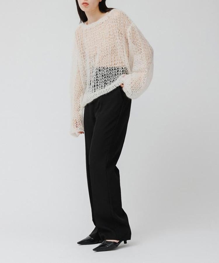 メッシュ=夏のイメージが強いですが、モヘア素材をメッシュ編みにすることで、夏のメッシュとはまた違った透け感を楽しめる一着に。