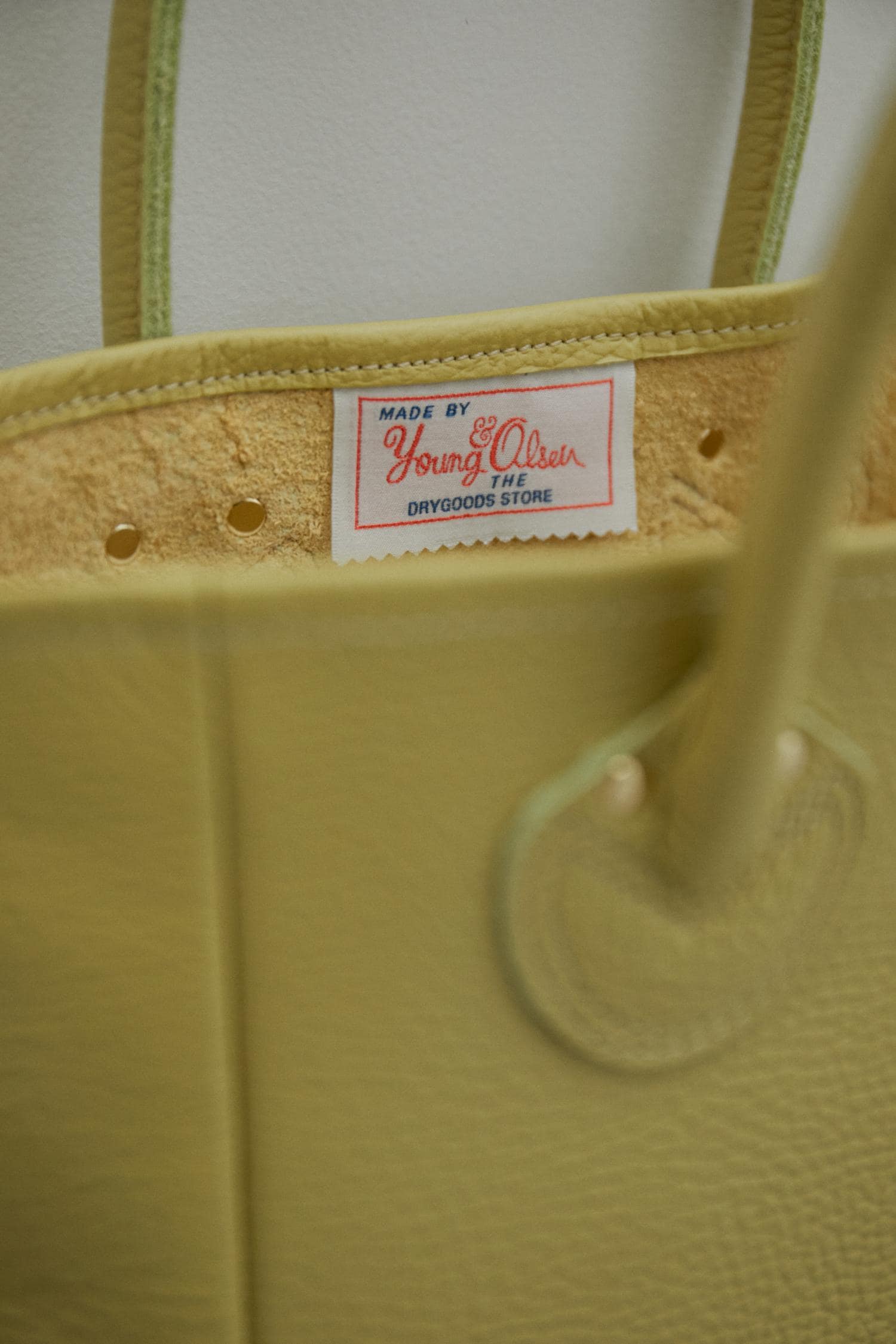 今回は人気のEMBOSSED LEATHER TOTE(S)に秋らしいトレンドのイエローとボルドーの2色を別注しました。