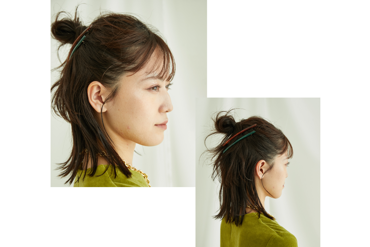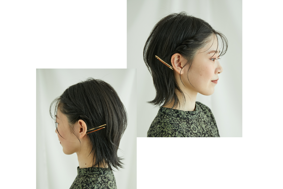 バックの毛流れをクロスさせることでエッジの効いたワンポイントに