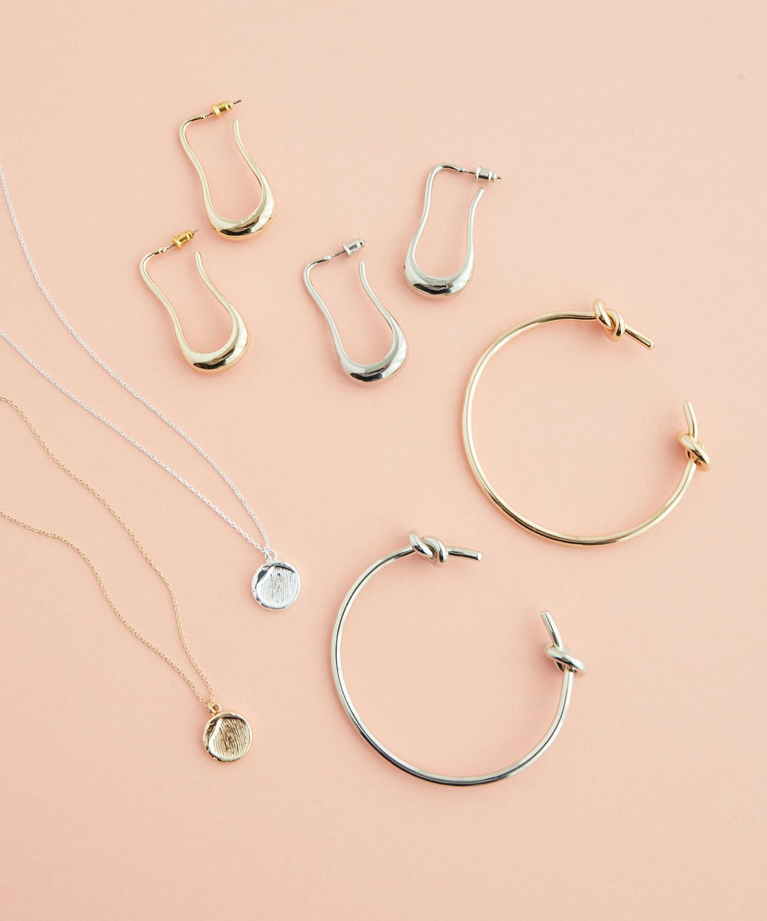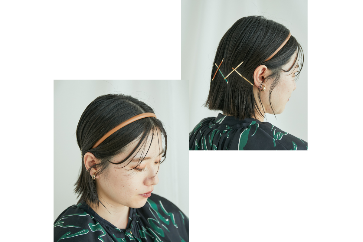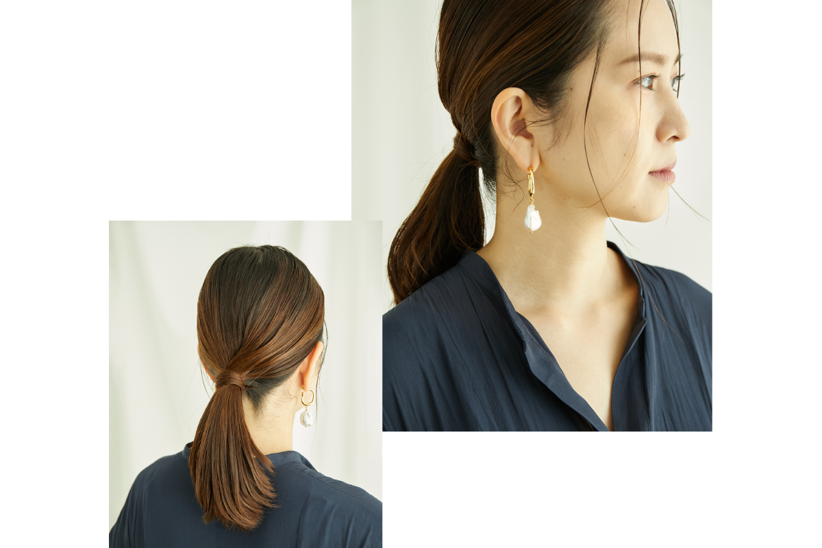 ニュアンスのあるメタルアクセサリーで艶やかな女性らしさを演出。上品な存在感で華やかな印象に