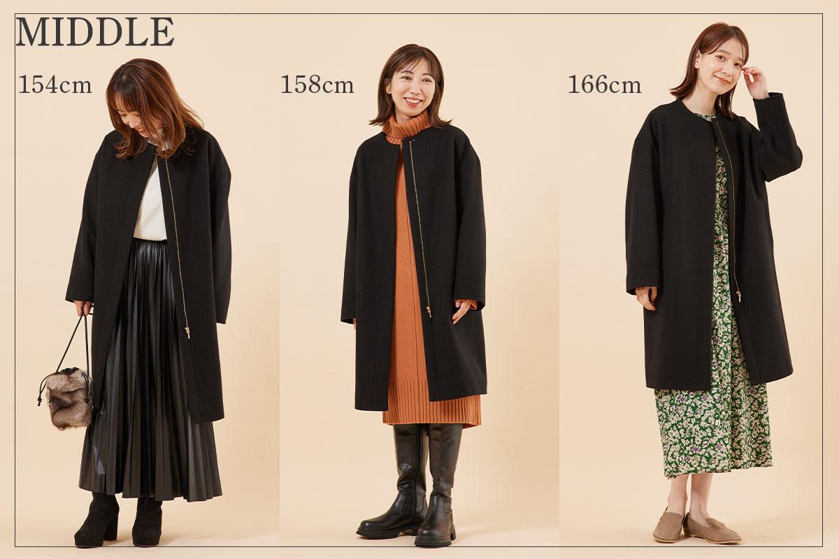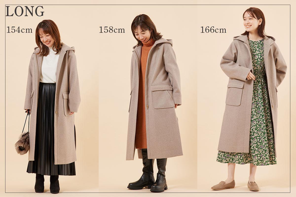 今回は、身長の違う3人が、ショート丈、ミドル丈、ロング丈とそれぞれ同じコートを着て、印象を着くらべてみました◎
